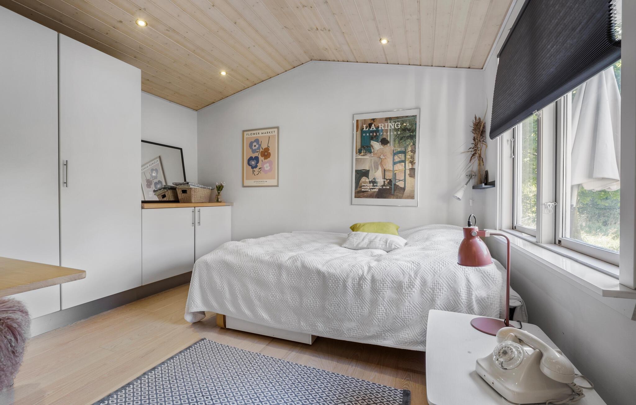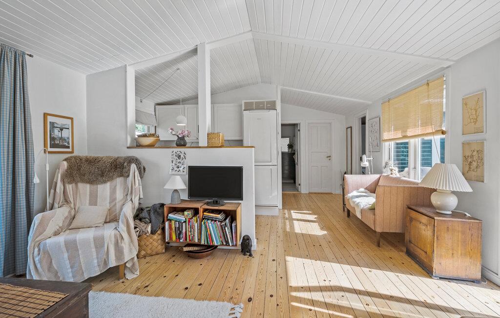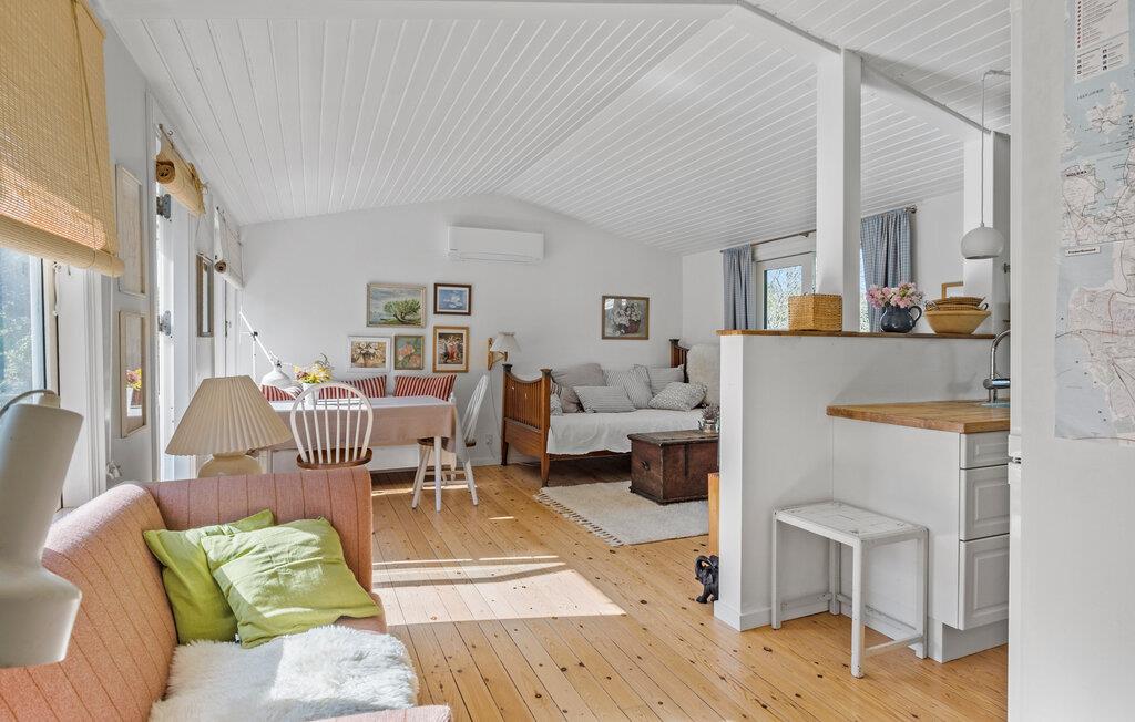 Ruhe, Stille und Idylle herrschen auf diesem Grundstück, auf dem Sie in diesem einladenden Sommerhaus einen wunderbaren Ausgangspunkt finden. Hier kann die ganze Familie den Alltag vergessen und eine schöne Auszeit genießen. Das Haus strahlt Licht, Luft und klassische skandinavische Innenarchitekturlösungen aus. Treffen Sie sich zu einem ruhigen Frühstück am Esstisch und genießen Sie die schöne Aussicht auf den Garten, während Sie Pläne für den Tag machen.