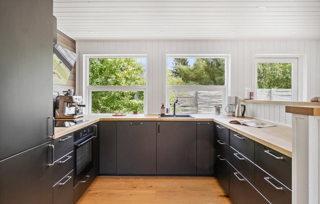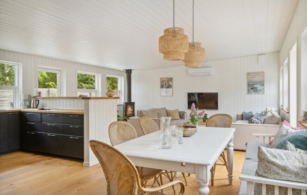 In Dronningmølle begrüßt Sie dieses einladende Ferienhaus in ruhiger Umgebung unweit von der attraktiven Nordküste Seelands. Das liebevoll dekorierte Interieur macht einen warmen, geschmackvollen Eindruck und bietet Ihnen und Ihren Lieben den perfekten Rahmen für entspannte Urlaubstage. Zaubern Sie in der modernen Küche Ihre Lieblingsgerichte gemeinsam zu und veranstalten Sie gemütliche Brettspielabende beim leisen Prasseln der Flammen im Kaminofen. An sonnigen Tagen werden Sie auf der Terrasse entspannte Stunden bei der Urlaubslektüre oder Kartenspielen verbringen, während die Kleinen sich auf dem Trampolin austoben oder im Sandkasten ihre eigene Stadt bauen.