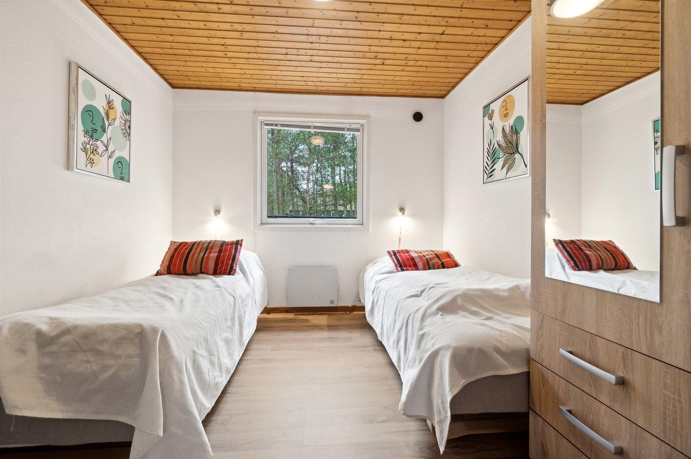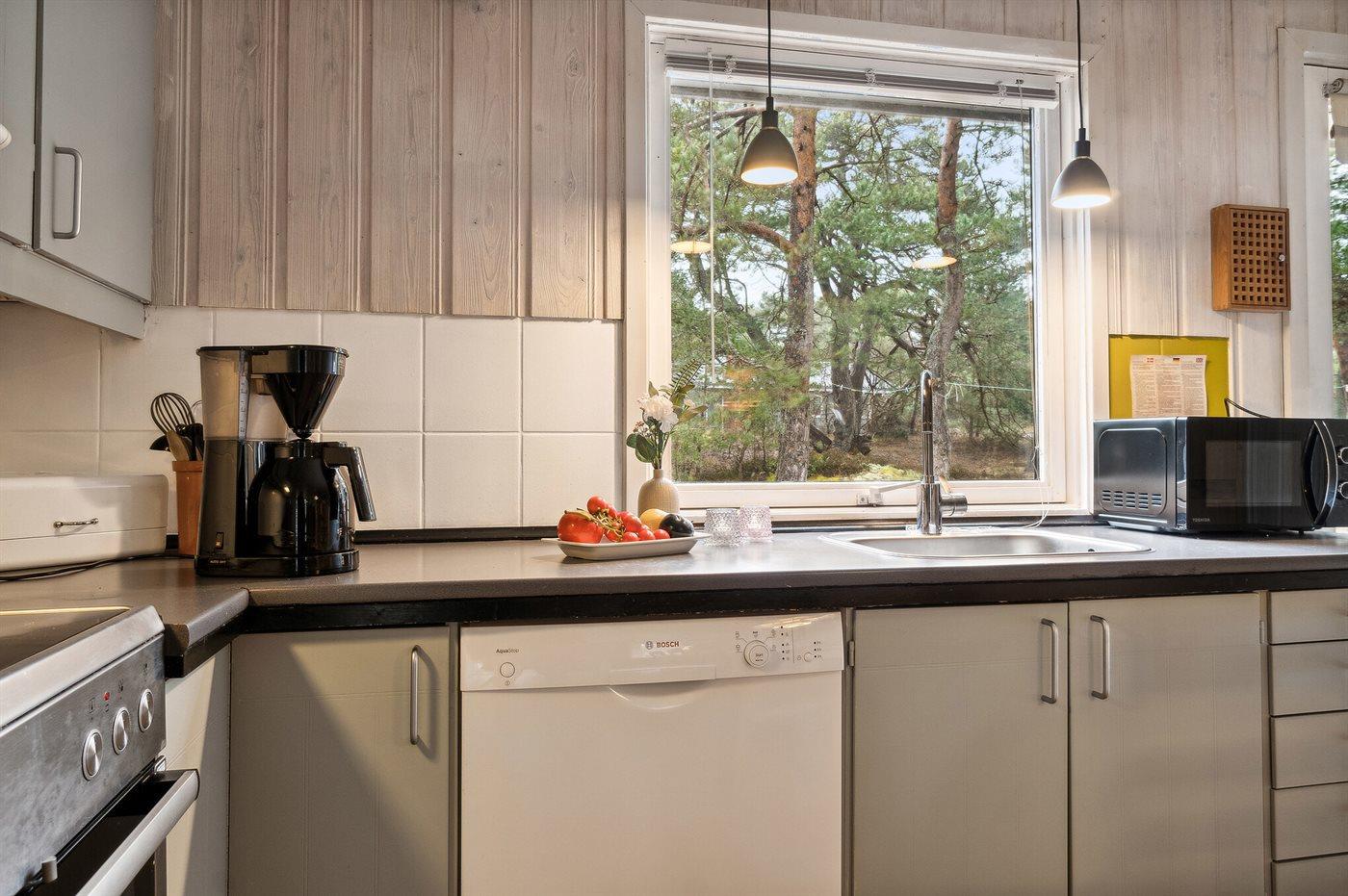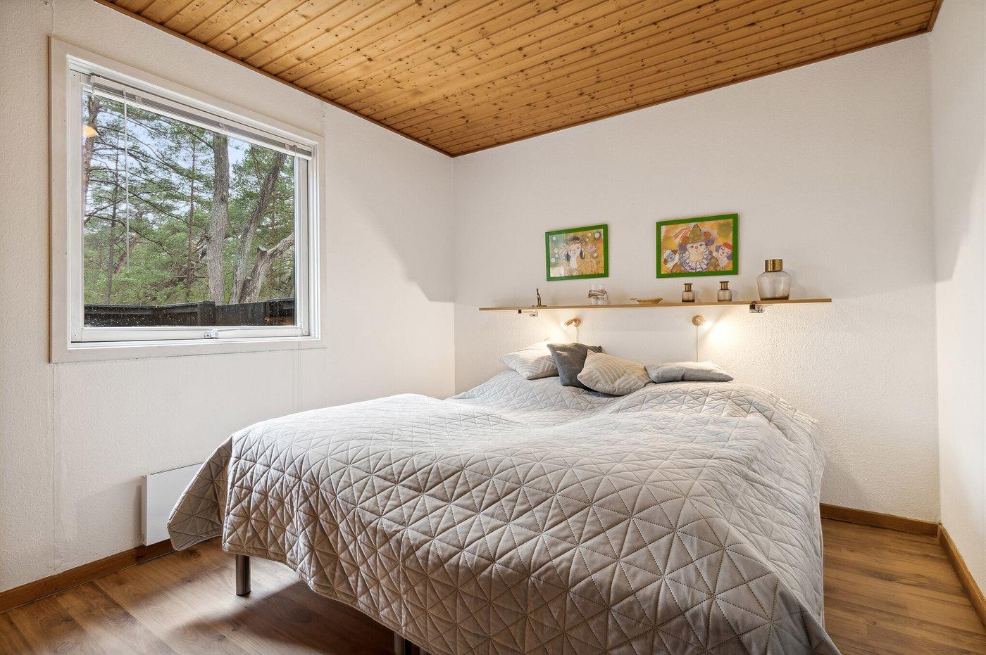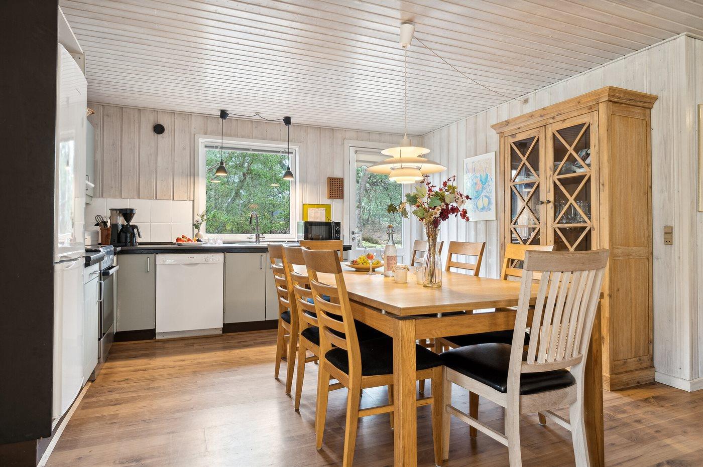 Schönes und geräumiges Ferienhaus aus Holz, nicht weit von einem Sandstrand entfernt, der auch in der Hauptsaison verhältnissmäßig ungestört liegt. Das Haus ist 1985 gebaut und liegt auf einem großen Naturgrundstück in einem Gebiet, das von Kiefernwald, Anhöhen und Dünen geprägt ist. Zum Haus gehört eine überdachte Terrasse und eine größere Steinterrasse vor dem Haus hier können Sie sowohl am Vormittag als auch am Nachmittag die Sonne genießen. Badezimmer mit Duschenische, Waschmaschine und Zutritt zur Sauna. Gästetoilette. Die Küche, mit guter Essecke, ist mit dem Wohnzimmer kombiniert und u. a. mit Geschirrspüler, Mikrowelle, Umluftofen und Tiefkühlgerät ausgestattet.2 Kühlschränke. Im großen Wohnzimmer finden Sie Kaminofen, Stereoanlage, Video, DVD-Spieler und TV mit digitalem Satellitenanschluss. Ferner kostenlose, kabellose Internetverbindung vorhanden.2017 neue Holzböden. Die Schlafplätze verteilen sich auf 4 Zimmer mit Boxspringmatratzen; 3 mit Doppelbett sowie 1 mit 2 Einzelbetten. Für die jüngsten Feriengäste stehen Kinderhochstuhl und 2 Kinderbetten zur Verfügung. Das Haus liegt 1 km von einem der 3 Golfplätze Bornholms entfernt. Besuchen Sie das gemütliche, ehemalige Fischerdorf Snogebæk mit u. a. Restaurants, ökologischem Eisverkauf und Supermarkt. Paradisbakkerne bei Nexø ist eine hügelige Klippenlandschaft mit unzähligen Wanderrouten. Hier können Sie tektonische Täler, Hochmoore, Wandersteine und die für diese Gegend typische Vegetation erleben.