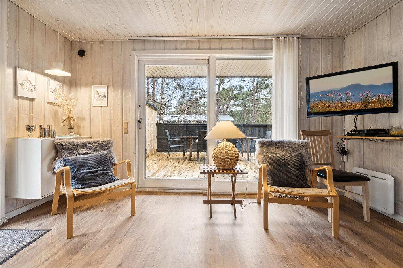 Gemütliches Holzferienhaus nahe Dueoddes Sandstrand mit Sauna und großem Naturgrundstück.