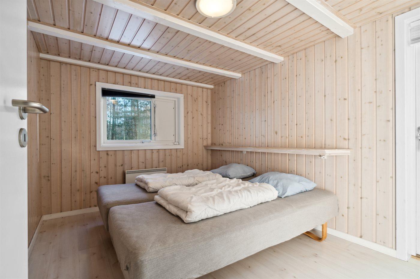 Auf einem kleinen Hügel mitten im Wald in der Nähe von dem großen und bekannten Hof ”Jomfrugård”, liegt dieses herrliche und gut ausgestattete Qualitätsferienhaus. Das Haus befindet sich nur wenige Minuten vom schönen Sandstrand entfernt, der zu lange Spaziergänge, einem Bad im kühlen Nass oder einfach nur zum Sonnenbaden einlädt.