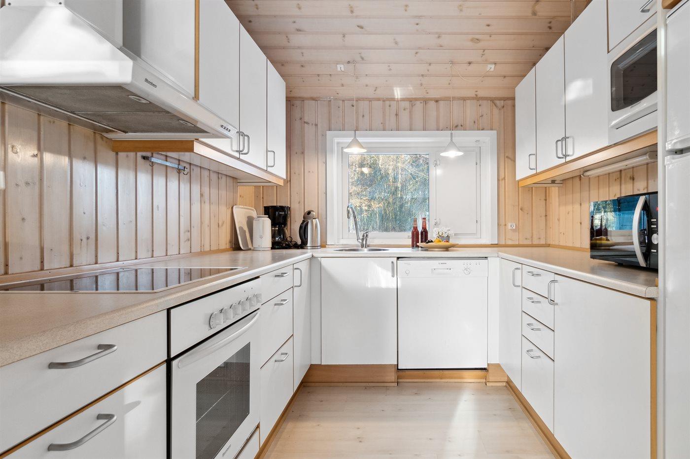 Das Haus ist aus Holz gebaut und im Inneren gibt es 3 Schlafzimmer und ein geräumiges offenes Obergeschoss, so dass ausreichend Platz für alle vorhanden ist. Das große Wohnzimmer hat natürlich Zugang zur Holzterrasse, wo man den Tag mit einer Tasse Kaffe in Ruhe angehen kann. Die Küche ist praktisch eingerichtet und verfügt über die notwendigen Einrichtungen, um für die große Familie oder die Freunde, die an diesem Urlaub in Dueodde teilnehmen, zu kochen.