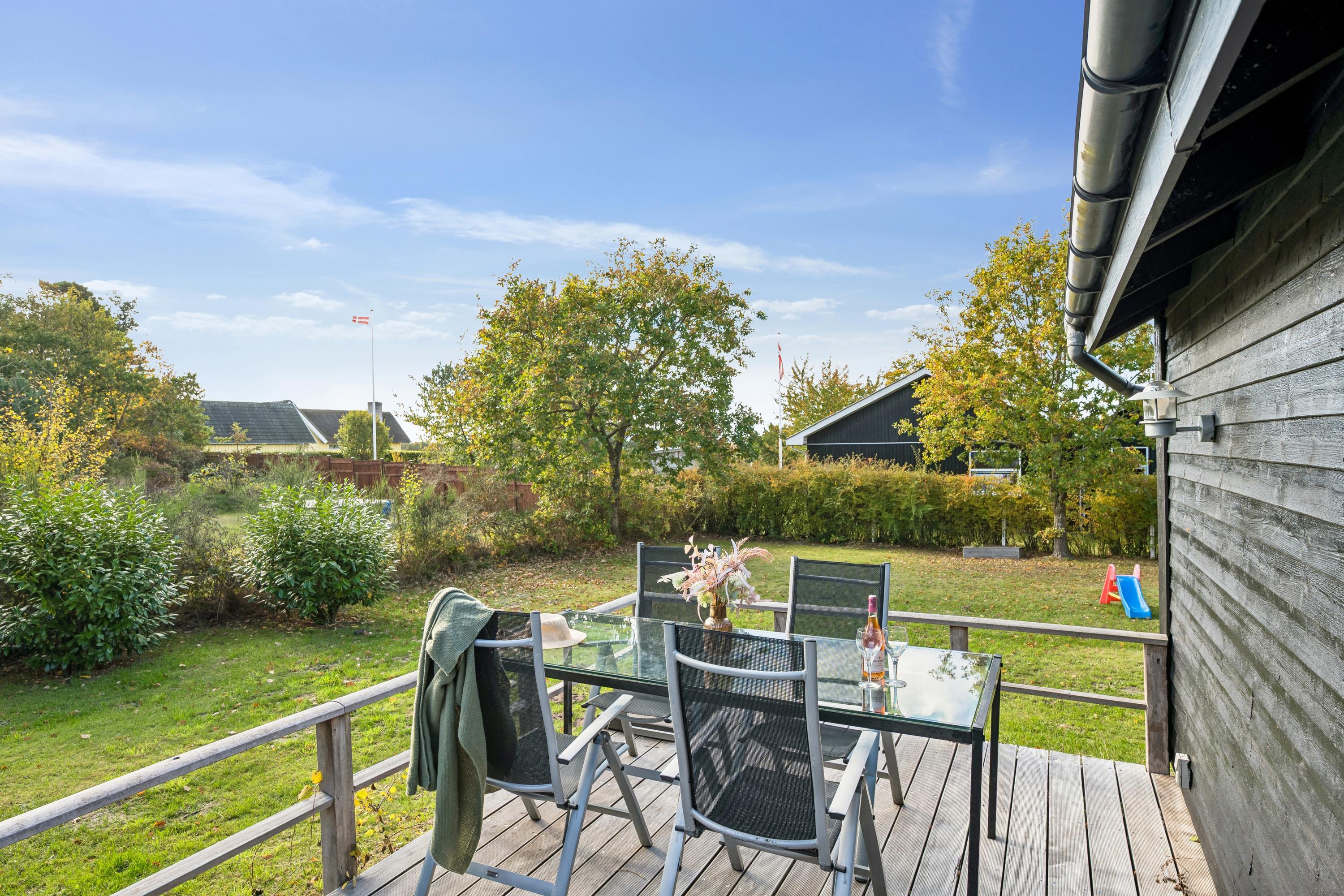 Gepflegtes und familienfreundliches älteres Ferienhaus auf einem gemütlichen Naturgrundstück in zentraler Lage in Boeslum Bakker am Rande von Ebeltoft. Von hier aus sind es nur wenige Kilometer zu schönen Badestränden und den hügeligen Greens des Ebeltoft Golfklubs. Schöne, abgeschirmte, nach Süden gewandte Holzterrasse mit Gartenmöbeln, Liegestühlen, Sonnenschirm und Grill. Auf dem Grundstück befindet sich ein Sandkasten für die Kleinsten und ein guter Spielplatz liegt nur 250 m entfernt.