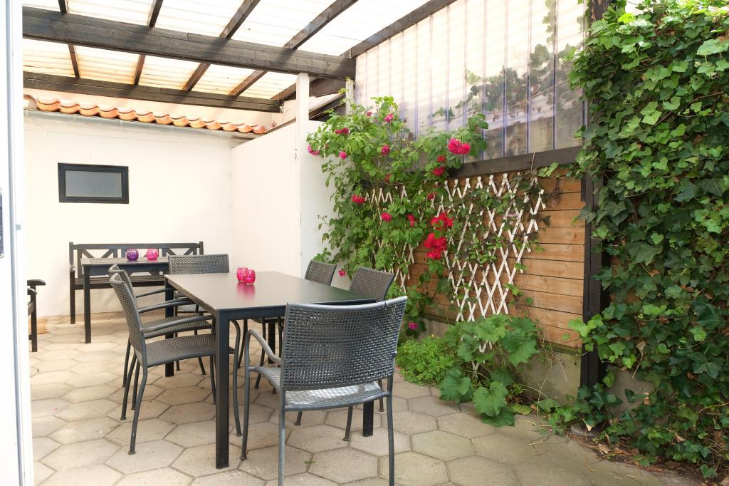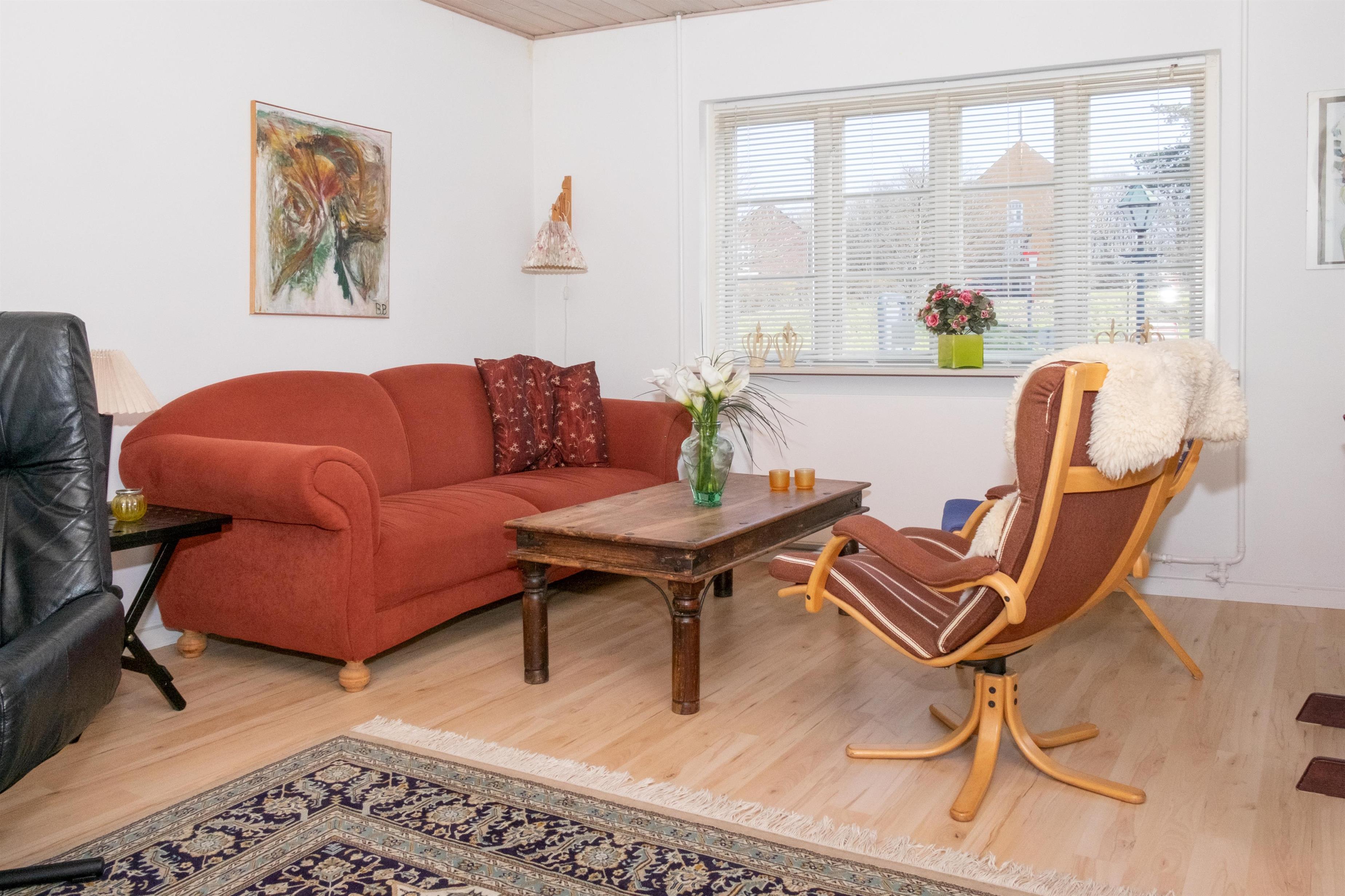 Großes Stadthaus mit zentraler Lage in Ebeltoft, in kurzem Abstand zur Einkaufstraße und zum Hafen. Vom 1. Stock haben Sie einen Blick über die ganze Stadt und auf Ebeltoft Vig, und das Haus hat eine schöne, ungestörte und überdachte Terrasse mit Gartenmöbeln und Sonnenliegen.