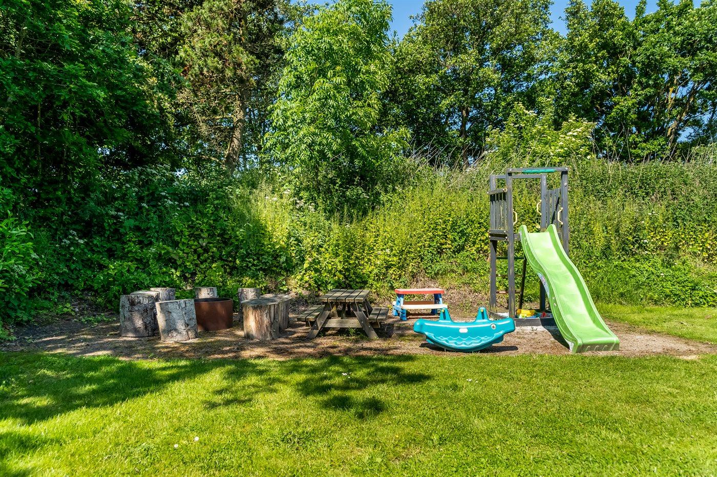 Die Ferienunterkunft liegt auf einem 1500 m² großen Gartengrundstück. Das Grundstück ist eingezäunt. Die Entfernung zum Meer beträgt 1300 m. Die Entfernung zum Fjord beträgt 700 m. Die nächste Einkaufsmöglichkeit liegt 650 m entfernt. Es steht ein 100 m² Terrassenareal zur Verfügung. Geräteraum. Sandkasten. Fußballtor.Lagerfeuerstelle. Es steht ein Grill zur Verfügung. Es ist ein Ladestecker für Elektroautos installiert. Parkplatz auf dem Grundstück.