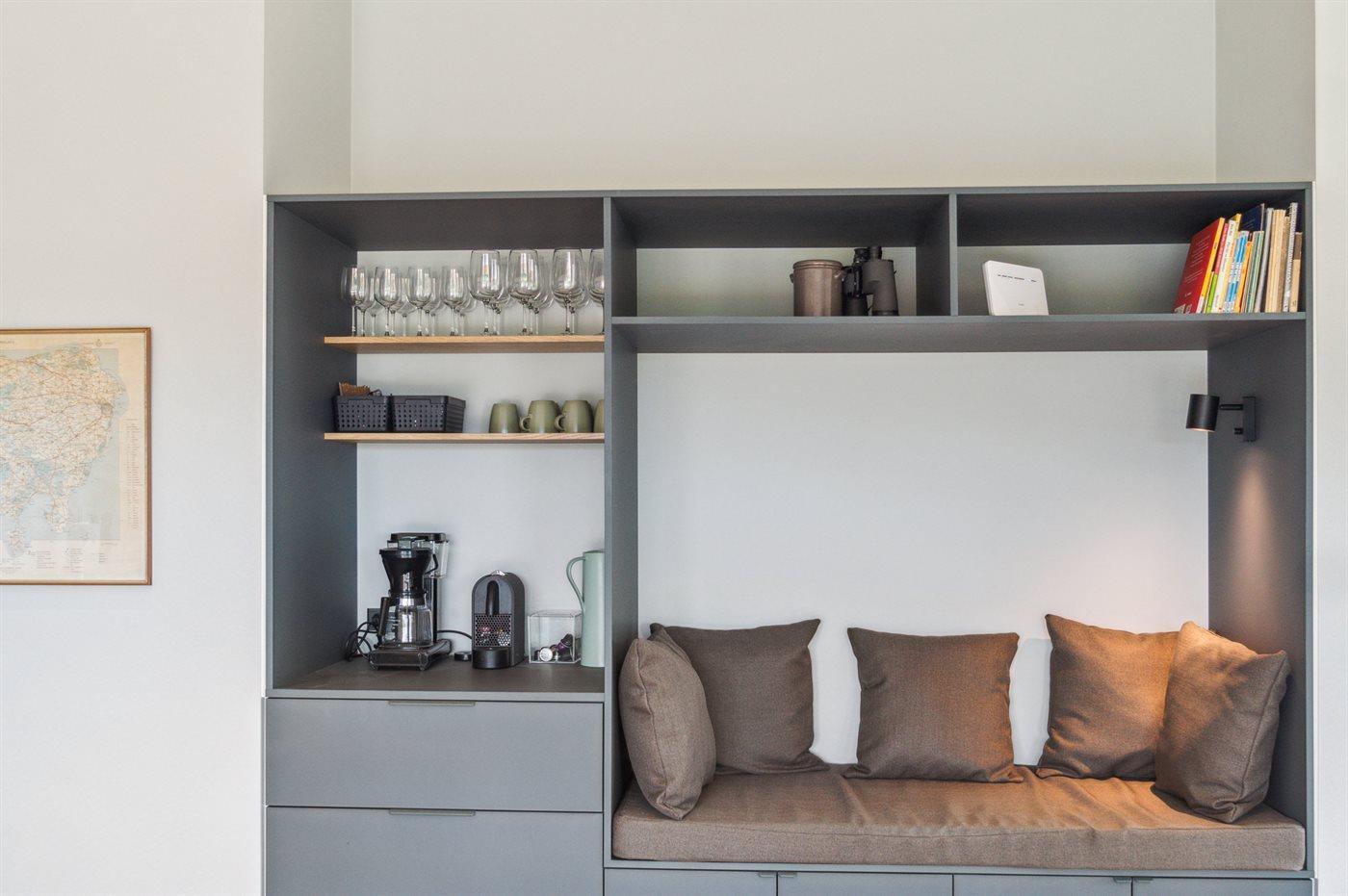 Die Küche ist mit Kühlschrank ausgestattet. Außerdem gibt es 4 Induktions-Kochzonen, Umluftofen sowie Geschirrspüler.