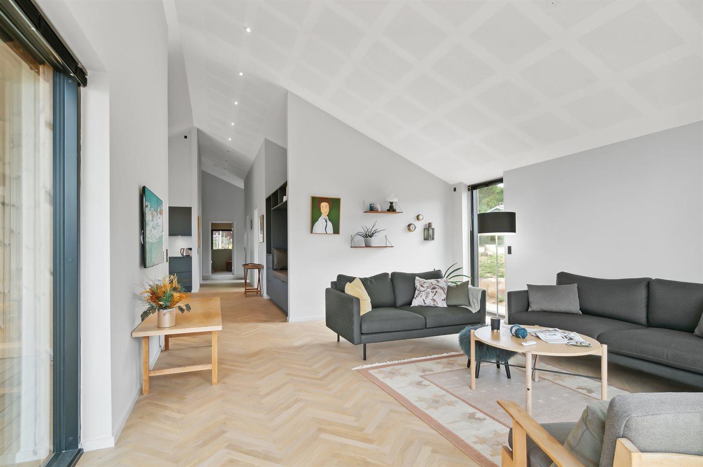 Das Ferienhaus ist aus sehr hochwertigen Materialien gebaut und tritt einwandfrei hervor – mit phantastischen Details, die man nicht oft zu sehen bekommt. Das Haus hat eine sehr gute Raumaufteilung und eignet sich für z.B. eine oder zwei Familien, die in dieser wunderschönen Umgebung Urlaub machen möchten.
