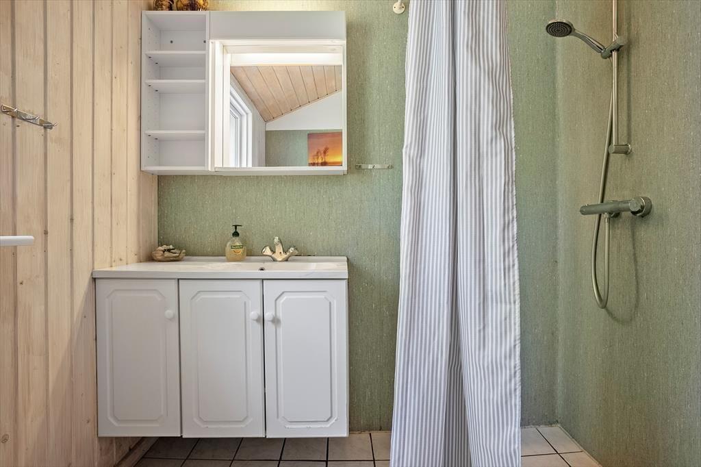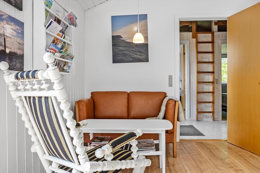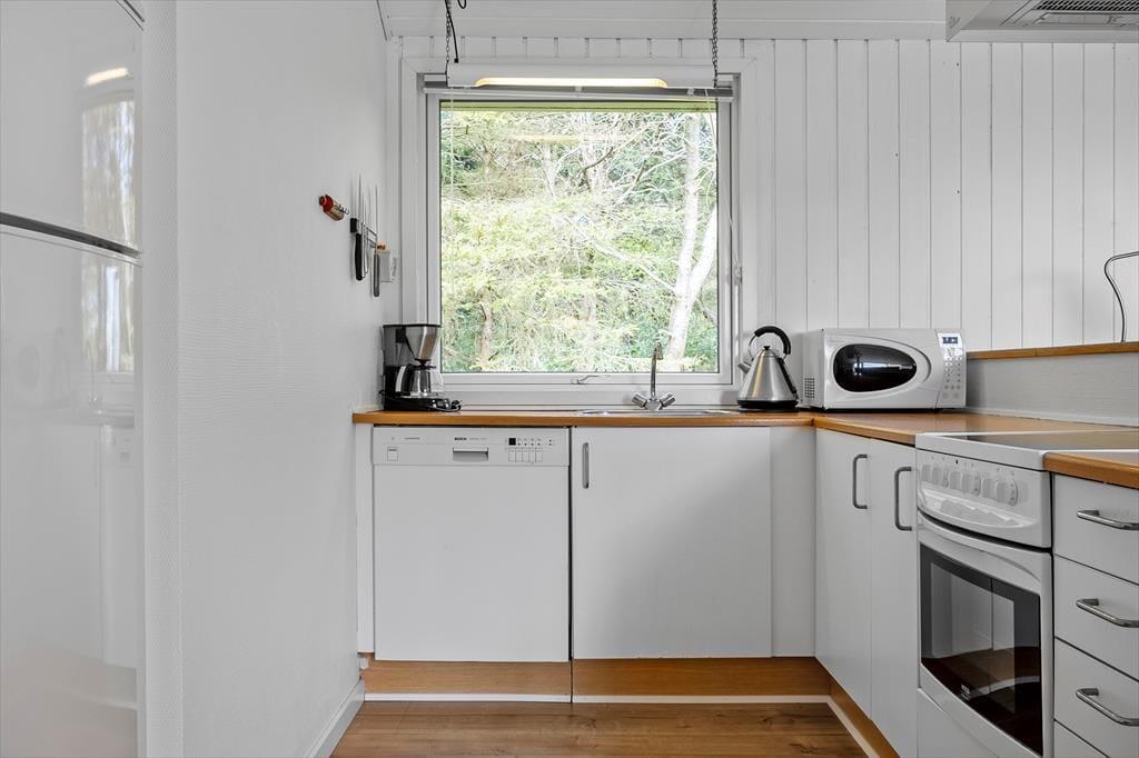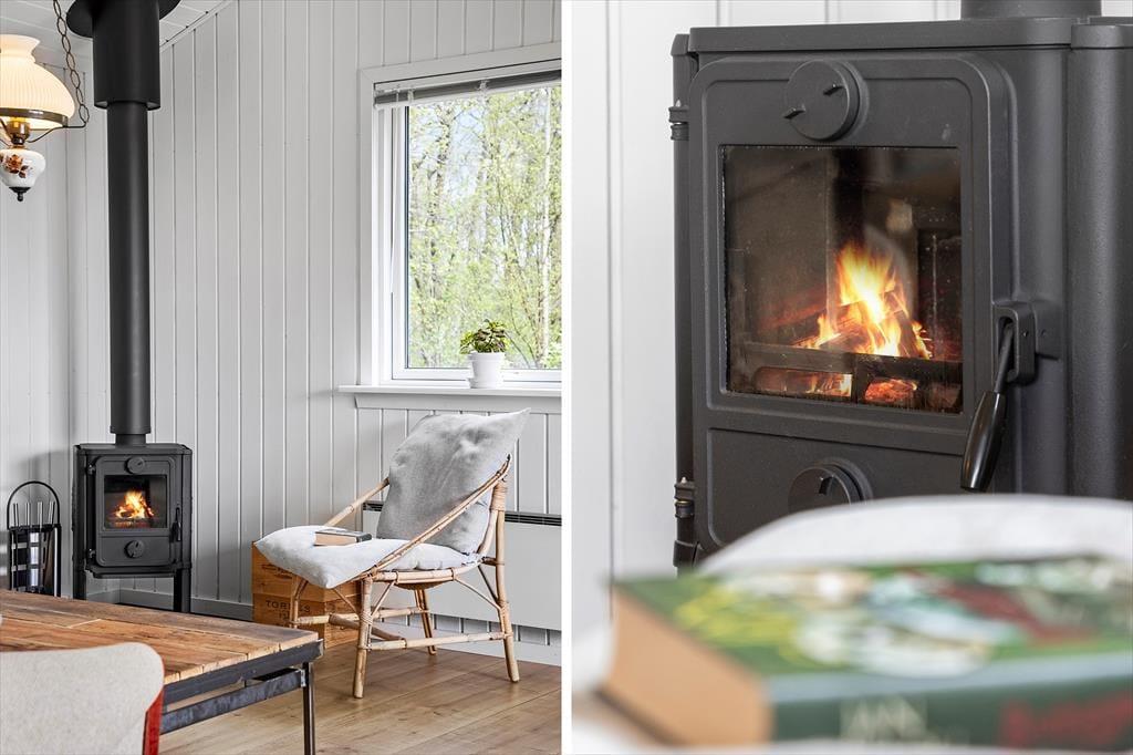 Das schöne, gut eingerichtete Ferienhaus mit einer Wohnfläche von 76 m² wurde im Jahr 2018 renoviert. Der Aufenthaltsraum besticht mit einer hellen und leichten Atmosphäre, die auf die weißgestrichenen Holzwände und die hohen Decken zurückzuführen ist. Der Kaminofen sorgt für ein Maximum an echtem Ferienhausflair. Zu den modernen Annehmlichkeiten zählen ein Fernseher mit Chromecast und eine gute WiFi-Verbindung. Die modernen Medien werden in Anbetracht des schönen Fjordblick allerdings eher zur Nebensache. Die schöne Küche fügt sich offen in den Wohnraum ein. Zur Wohnfläche zählen darüber hinaus ein ansprechendes Duschbadezimmer mit einer Waschmaschine und zwei gute Schlafräume. Beide Räume verfügen über jeweils ein Doppelbett. Vom Eingangsbereich gelangen Sie auf einen großen Schlafboden mit zusätzlichen Matratzen.