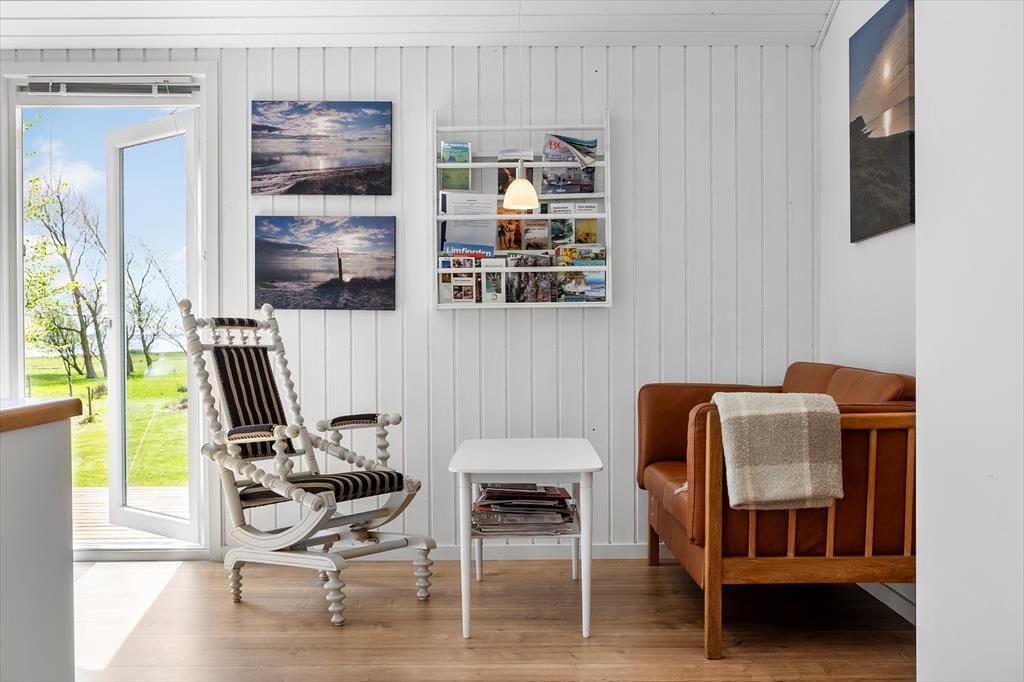Sie wohnen in der ersten Häuserreihe zum Limfjord, wenn Sie sich für dieses schöne Ferienhaus in Ejerslev Lyng auf Nordmors entscheiden. Im Wohnraum und in der offenen Küche genießen Sie die Aussicht auf die blauen Wellen des Limfjords. Der gleiche schöne Ausblick erwartet Sie, wenn Sie sich auf der Terrasse sonnen oder auf der Grasfläche Fußball spielen.