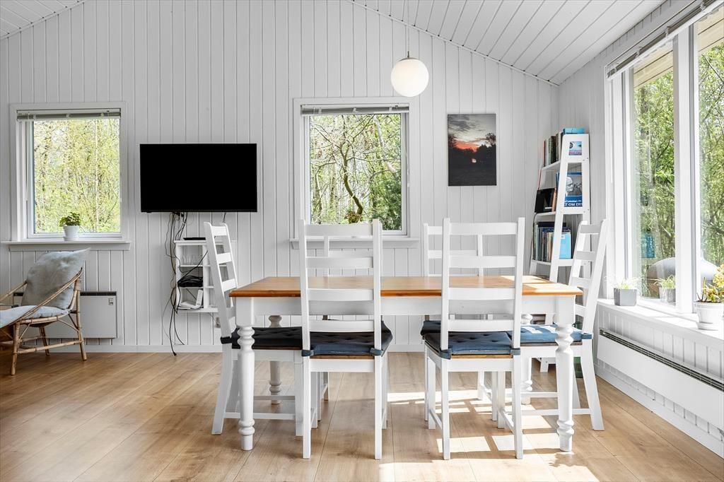 Ejerslev Lyng ist ein idyllisches Fleckchen für erholsame Urlaubstage. Urlauber, die Wert auf Frieden, Ruhe und schöne Natur legen, sind hier bestens aufgehoben. Innerhalb eines kurzen Augenblick spazieren Sie an den Strand, an dem Sie auf eine Lagerfeuerstelle und Picknickbänke treffen. Ein Stückchen weiter steht Ihnen in der Hochsaison ein Badesteg zur Verfügung. Etwas weiter nördlich befinden sich der Hafen von Ejerslev und die Ejerslev Lagune. Hier können Sie am Fuße der hohen Molerabhänge auf die Jagd nach Fossilien gehen. Binnen kurzer Zeit erreichen Sie Feggeklit und die kleine Fähre, mit der Sie nach Amtoft in der Region Thy übersetzen können. Auf Mols freut sich die beschauliche Hafenstadt Nykøbing auf Ihren Besuch. Einen vergnügten, erlebnisreichen Urlaubstag verbringen Sie mit Ihrer gesamten Familie im überaus populären Jesperhus Blomsterpark.