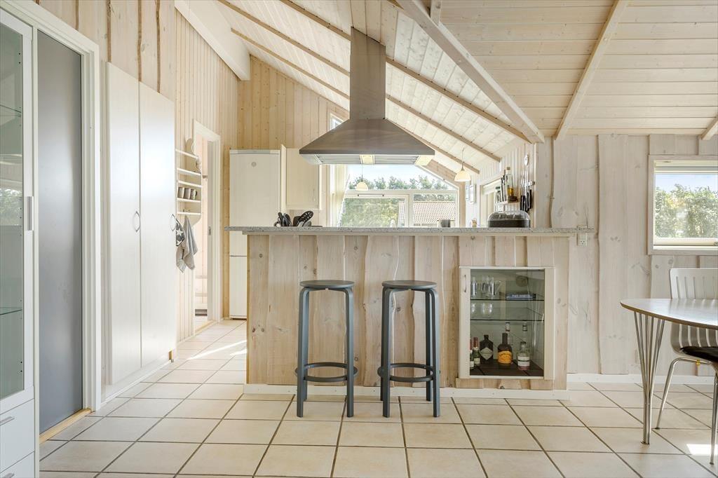 Denkst du auch, dass dir die Aussicht auf das Wasser und über die grüne Landschaft ein ganz besonderes Gefühl von Ruhe und Entspannung verleiht? Das gleiche Gefühl bieten dir der Wohnraum und die drei Schlafräume deines Ferienhauses. Du spürst, wie die Anspannung von deinen Schultern abfällt und du dich immer weiter vom hektischen Alltag entfernst. Mache es dir in aller Ruhe auf dem Sofa nah am Kaminofen gemütlich, lasse die Seele baumeln und schlafe dich in den komfortablen Betten nach Herzenslust aus. Die gut ausgestattete Küche fügt sich offen in den Wohnraum ein. Selbst während der Zubereitung der Mahlzeiten genießt du daher die Nähe und Gesellschaft deiner Lieben, die sich im Wohnraum tummeln. Falls du keinen Küchendienst hast, kannst du dich auf einem der Barhocker am Küchentresen niederlassen und mit dem Koch des Tages angeregte Gespräche führen.