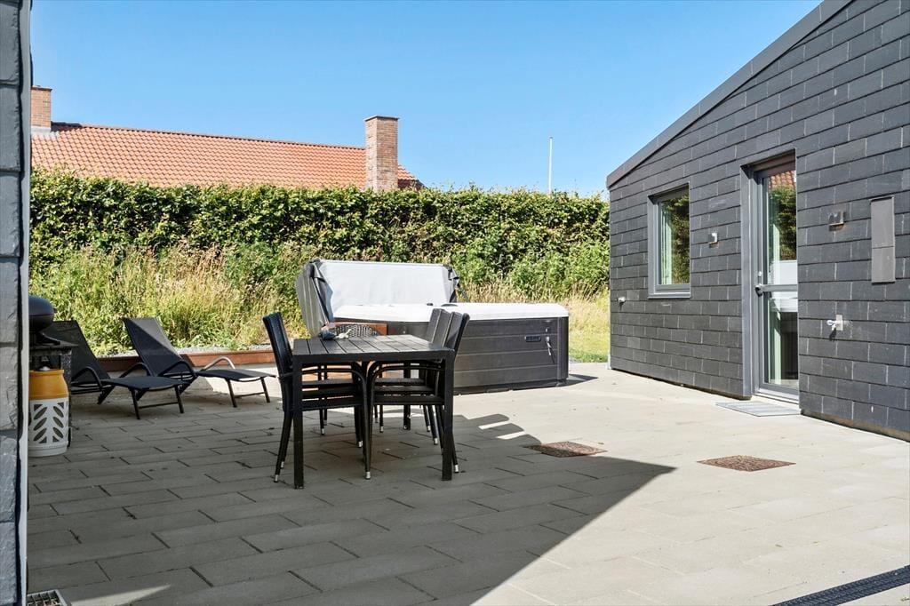 Auf der Terrasse des Hauses spürt ihr sofort, dass ihr Urlaub habt. Von hier aus habt ihr einen wunderschönen Blick über die Bucht – perfekt für den Morgenkaffee, ein Mittagessen in der Sonne oder lange, laue Abende unter freiem Himmel. Wenn der Körper nach Verwöhnung verlangt, springt ihr in den Außen-Whirlpool – vielleicht mit einem Glas Wein und Blick auf den sternenklaren Himmel. Der grüne Garten ist ideal zum Entspannen und Spielen, wo Kinder und Junggebliebene sich austoben können, während auf der Terrasse schon zum Grillabend gedeckt wird. Ob ihr einen faulen Tag in der Sonne oder geselliges Beisammensein im Schatten bevorzugt – der Außenbereich bietet den perfekten Rahmen dafür.