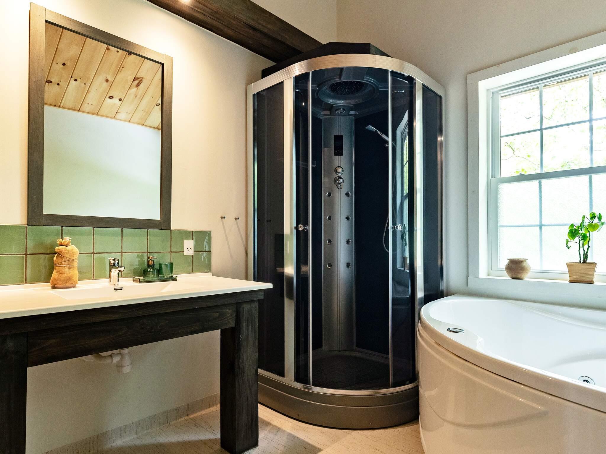 Dieses wunderschön renovierte Ferienhaus, das 2020 komplett modernisiert wurde, bietet modernen Komfort in fantastischer Lage direkt am Limfjord, nur 100 Meter von einem kinderfreundlichen Strand entfernt. Das für mehrere Familien konzipierte Haus verfügt über einen Innen- und einen Außenwhirlpool sowie einen atemberaubenden Blick auf den Fjord. Zwei energieeffiziente Wärmepumpen halten die Heizkosten niedrig und sorgen das ganze Jahr über für Komfort.