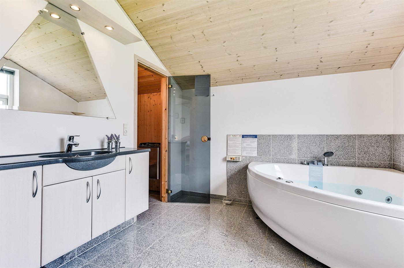 Es gibt 2 Badezimmer mit Duschnische und 2 Toiletten. Fußbodenheizung in 1 Badezimmer. Es steht eine Sauna zur Verfügung in der Sie sich so richtig entspannen können.
