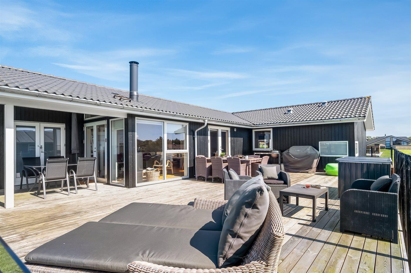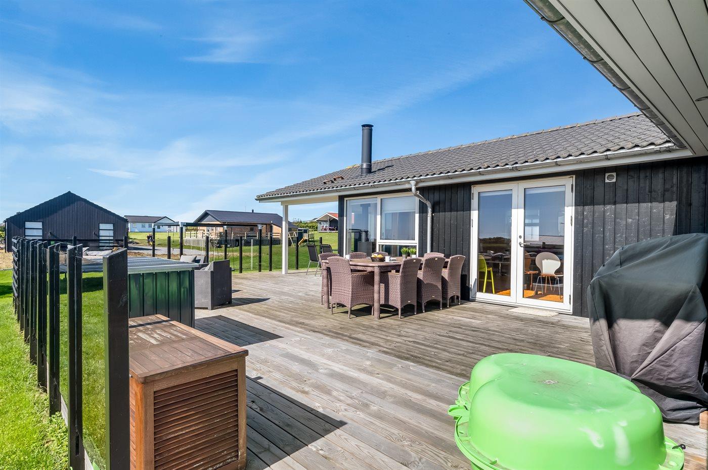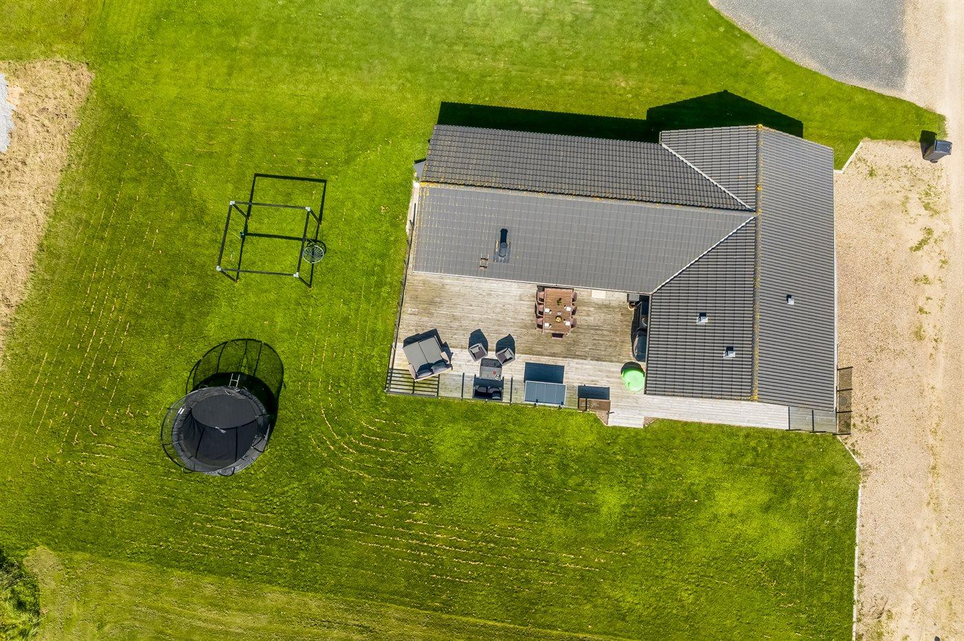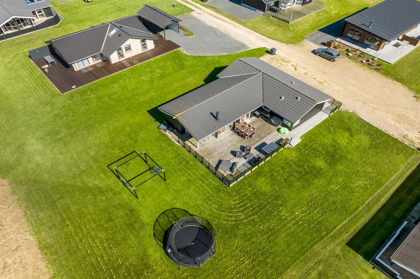 Das Ferienhaus liegt auf einem 1000 m² großen Naturgrundstück. Bis zum Fjord sind es nur 150 m. Es gibt 100 m² Terrassenfläche, davon sind 20 m² überdacht. Im Garten findest du Sandkasten, Trampolin, Schaukeln und Hängematten. Ein Spielplatz liegt 2000 m vom Haus entfernt. Außerdem steht ein Carport zur Verfügung, und es gibt Parkmöglichkeiten auf dem Grundstück.
