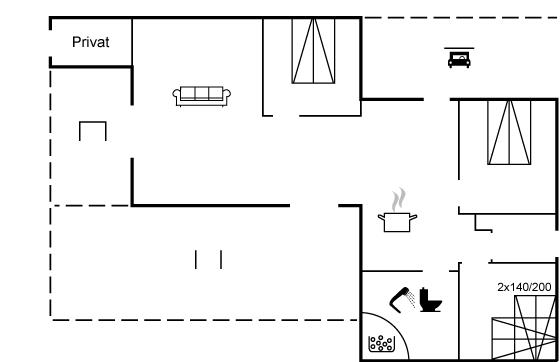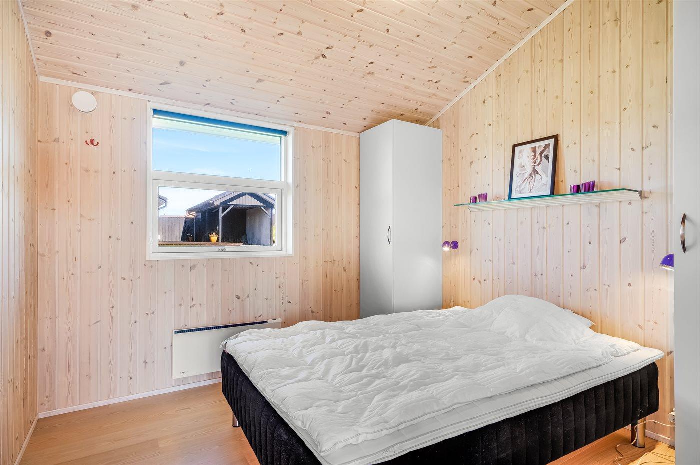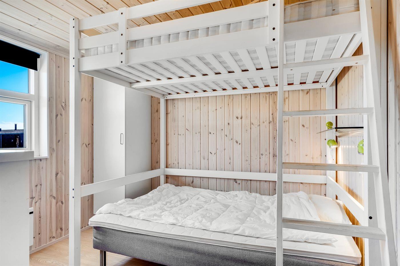 Die Schlafplätze verteilen sich auf 3 Schlafzimmer, alle mit Doppelbett. Das eine Doppelbett ist eine Form von Etagenbett mit einer 140 cm breiten Liegefläche. Außerdem steht ein Kinderbett zur Verfügung.