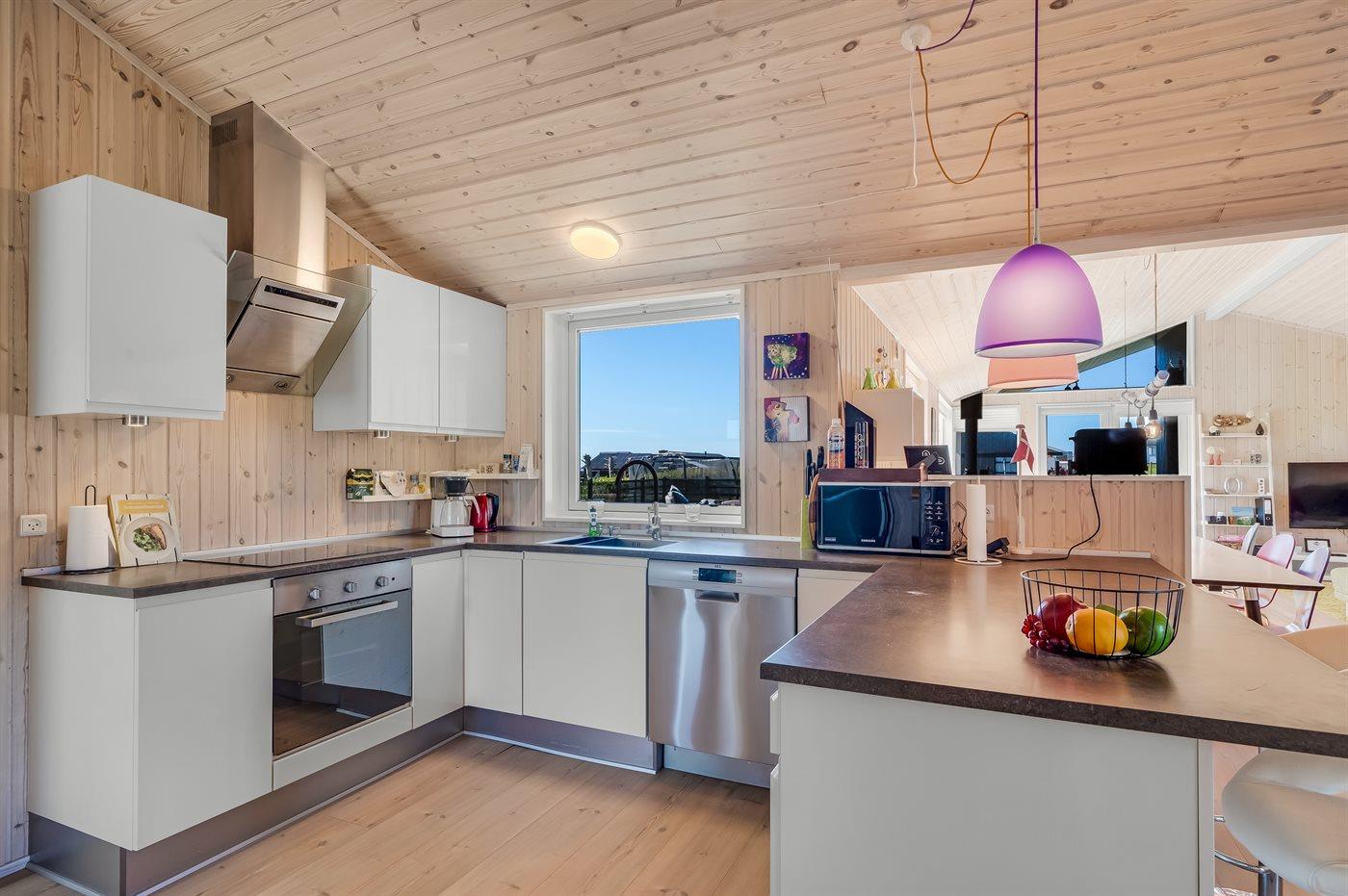 Die Küche ist u. a. mit Kühlschrank, Gefriertruhe ausgestattet (80 Liter Gefrierkapazität), 4 Induktionskochfelder, Umluftofen, Mikrowelle und Geschirrspülmaschine ausgestattet.