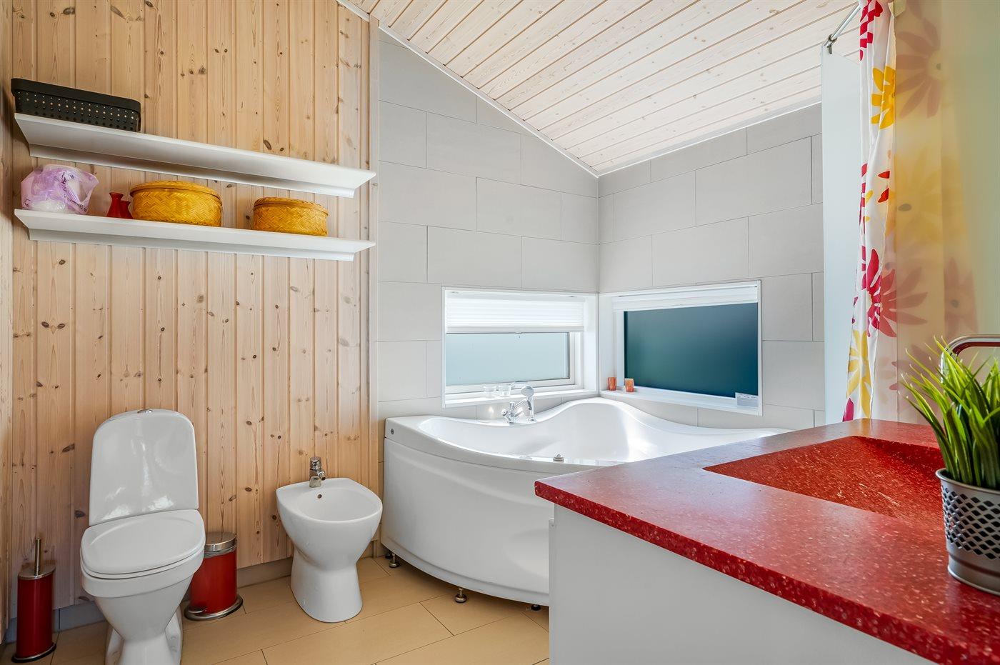 Das Haus verfügt über ein Badezimmer mit Fußbodenheizung, Duschnische und Toilette. Zur Entspannung gibt es einen Whirlpool für 2 Personen.