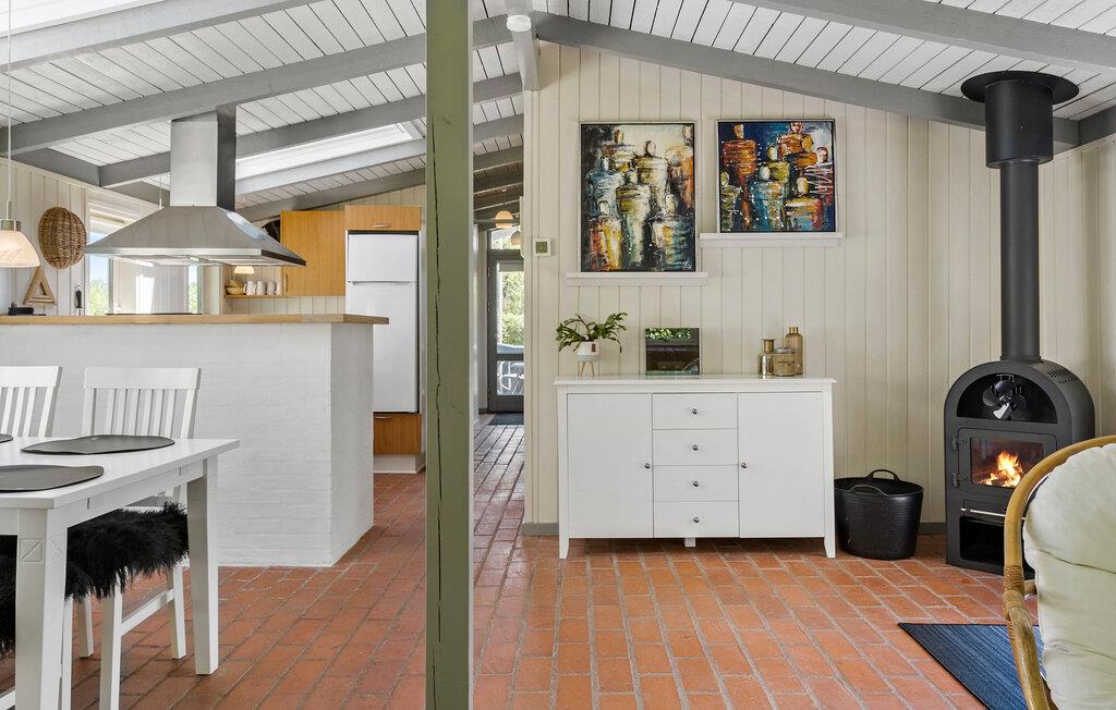 Willkommen an der Venø Bucht, wo dieses charmante Ferienhaus auf Sie wartet. Das gemütliche Haus empfängt Sie mit einer warmen, einladenden Atmosphäre. Starten Sie den Tag mit einem gemeinsamen Frühstück in der offenen, gut ausgestatteten Küche. Im angrenzenden Essbereich können Sie Ihre Tagespläne schmieden und die Mahlzeiten in geselliger Runde genießen. Der helle Wohnbereich, durchflutet von Tageslicht dank großer Fensterfronten, lädt zum Entspannen ein. Machen Sie es sich auf den bequemen Sesseln und dem Sofa gemütlich und lassen Sie die Ruhe auf sich wirken.