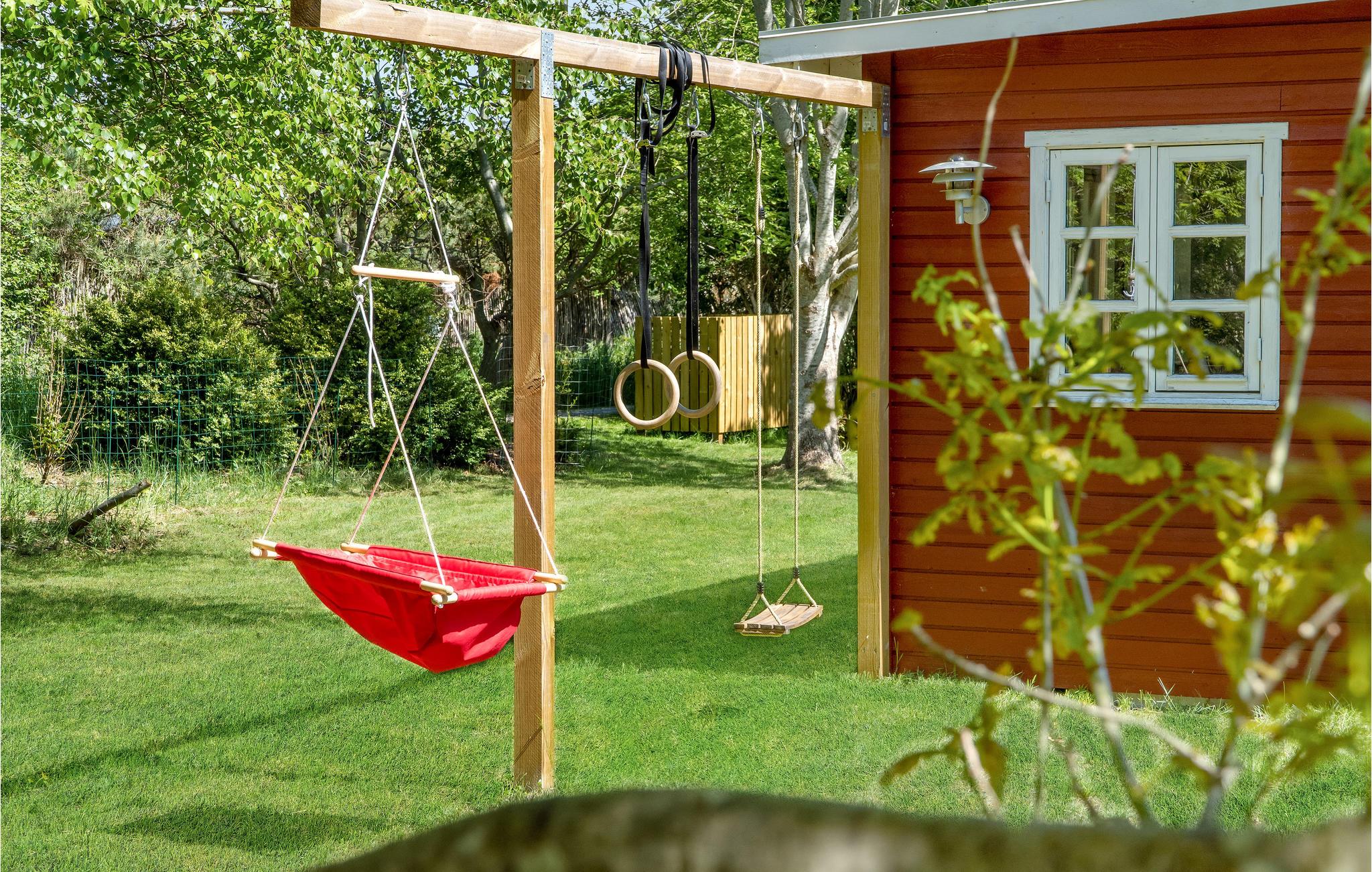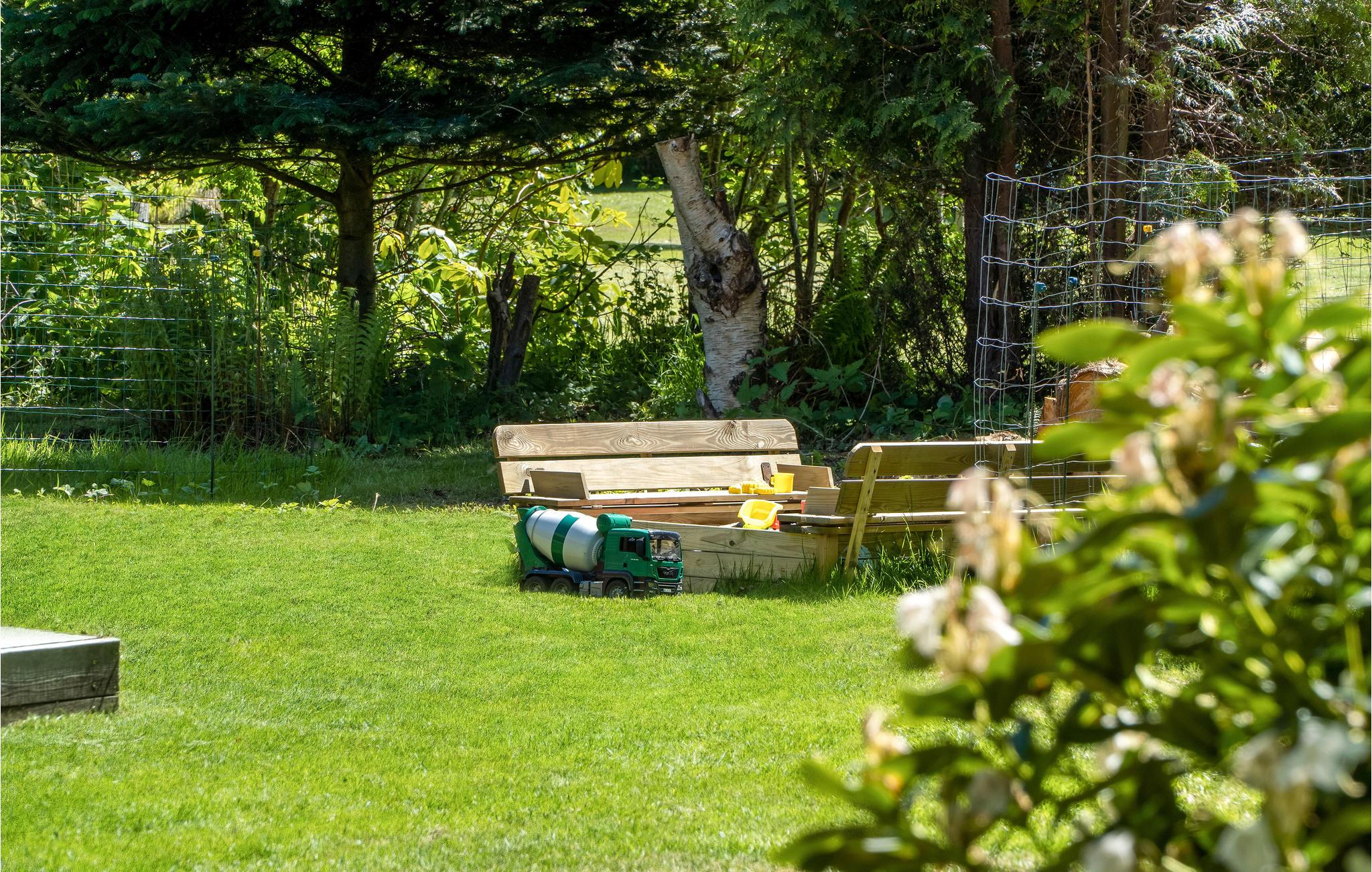 Ein farbenfrohes Design mit dem harmonischen Holzinventar bietet Ihnen einen gemütlichen Wohnraum für entspannte Stunden bei knisterndem Kaminfeuer und einem Gläschen Wein oder Unterhaltungsspielen. Im Außenbereich erwartet Sie eine teilweise überdachte Terrasse mit Gartenmöbeln und Grill, wo Sie zusammen frühstücken und zum Abend hin grillen können. Zudem gibt es auch Spielmöglichkeiten für die jungen Gäste, u.a. Schaukel und Sandkasten.