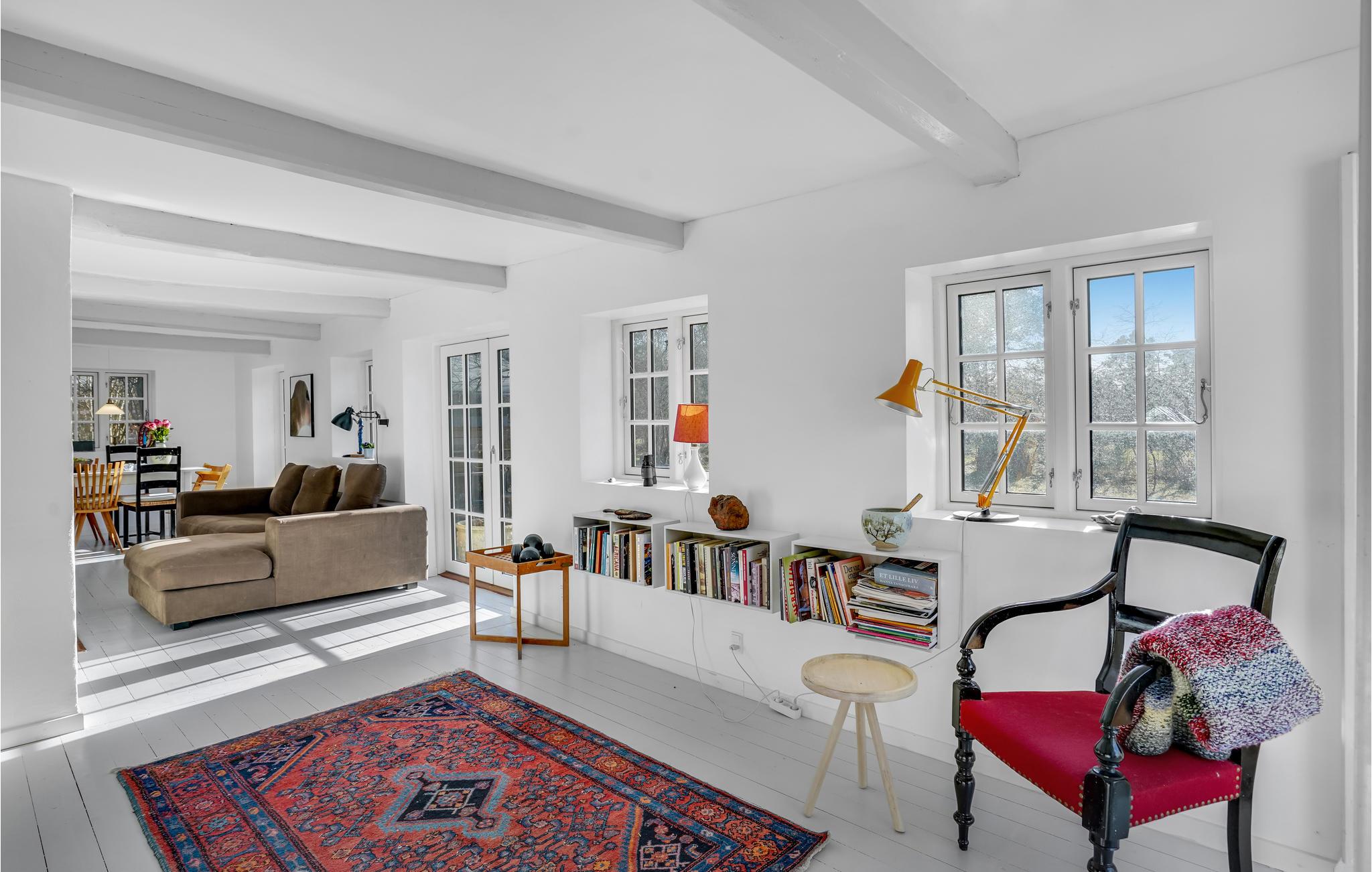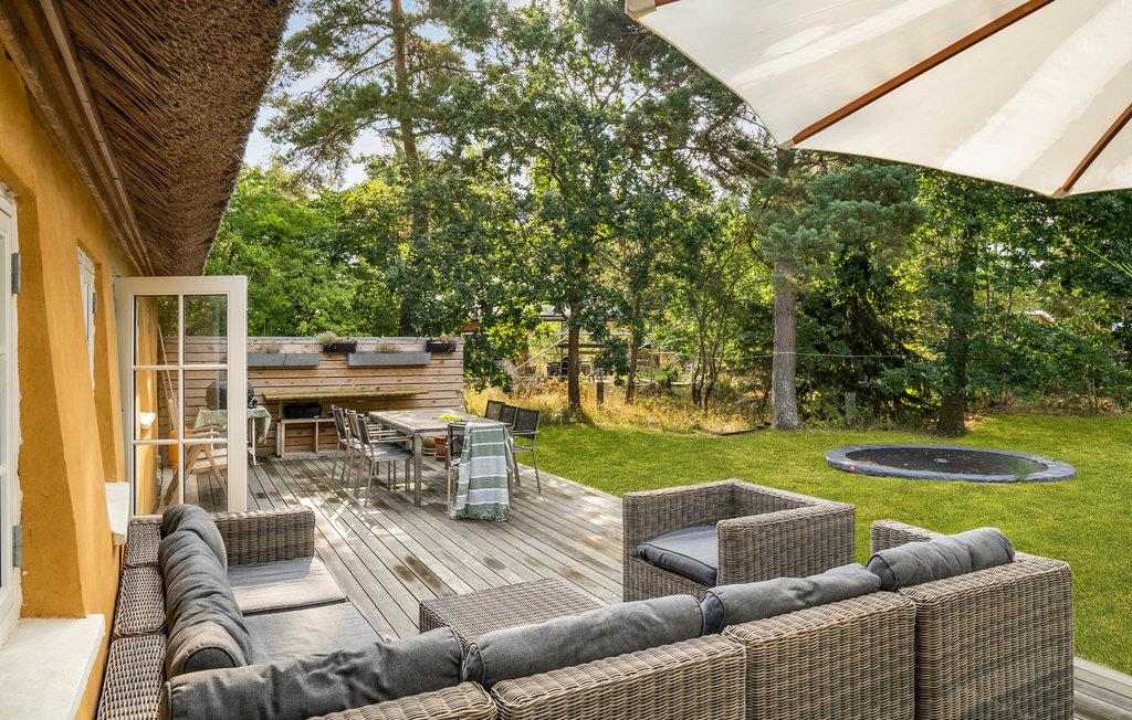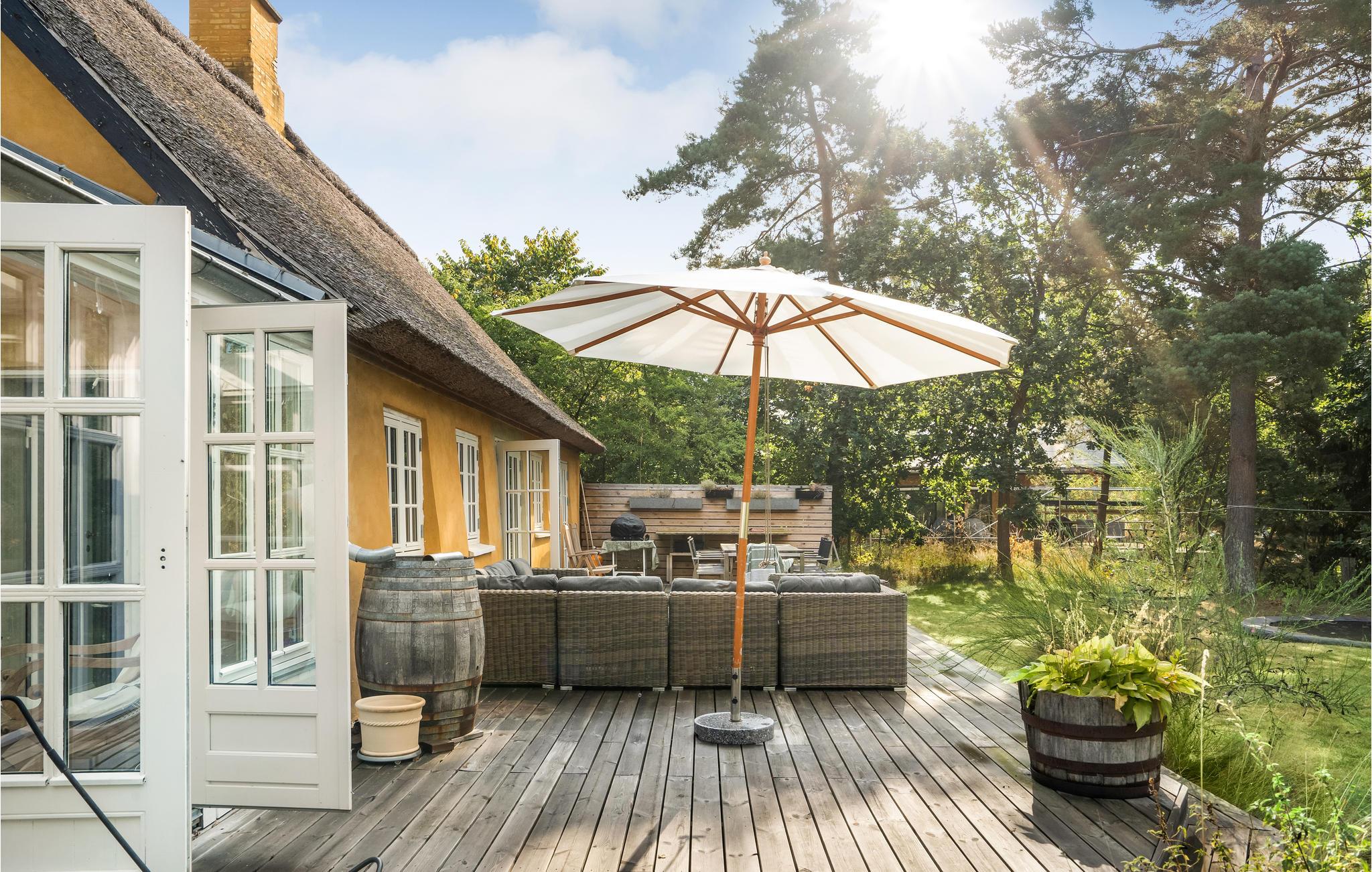Willkommen in der schönen Gegend Odsherred, wo Sie wunderbare Landschaften erwarten. Beim morgendlichen Kaffee im lichtdurchfluteten Wintergarten startet der Tag, und Sie blicken in das friedliche Grün des Gartens in Gedanken darüber, was der Plan für die kommenden Stunden ist. In der Behaglichkeit des authentischen, mit Reetdach gedeckten Hauses lässt es sich gut gehen, sei es vor dem Kamin, auf der Terrasse mit Blick in den Garten oder beim erholsamen Ausschlafen im Schlafzimmer.