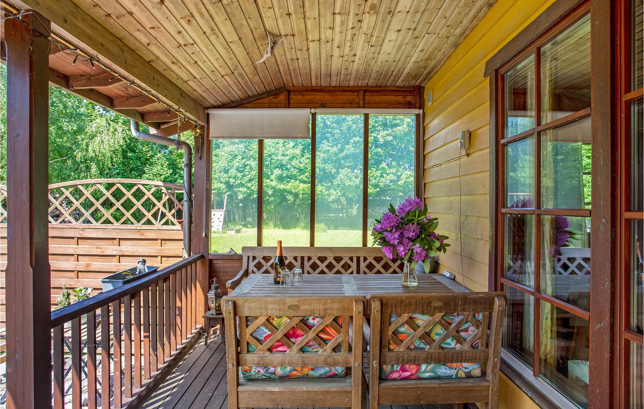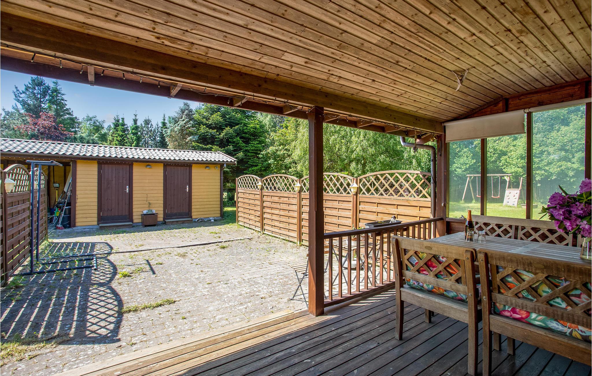 Das Haus befindet sich auf einem sichtgeschützten Grundstück mit Rasenflächen, auf denen die Kinder viel Platz zum Spielen und aktiv sein finden. Mit diversen Aktivitätsmöglichkeiten und Spielen ist auch draußen für Unterhaltung gesorgt. Die Veranda lädt zum draußen essen oder geselligen Abenden ein.