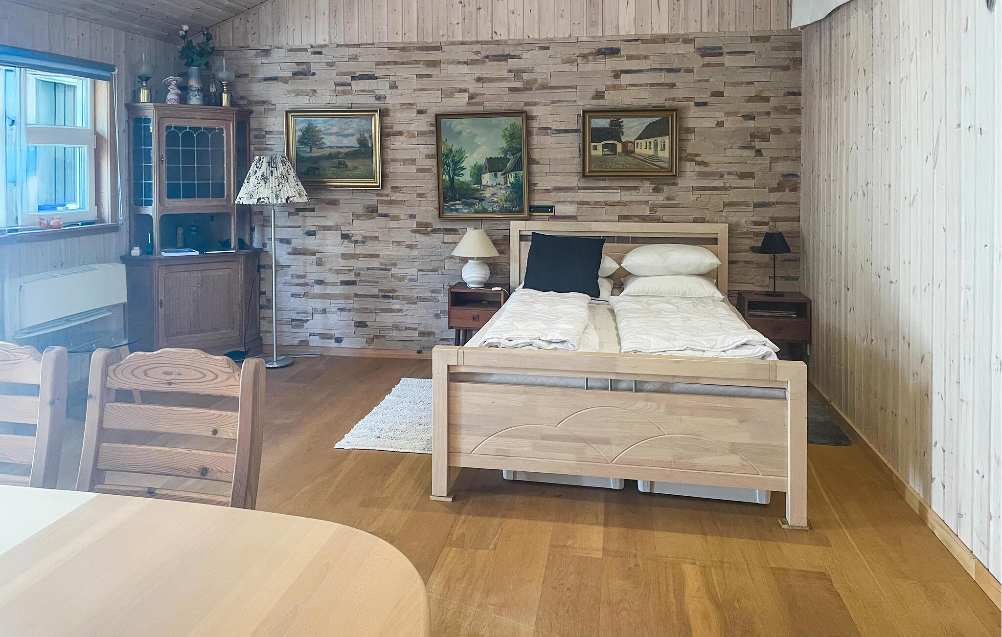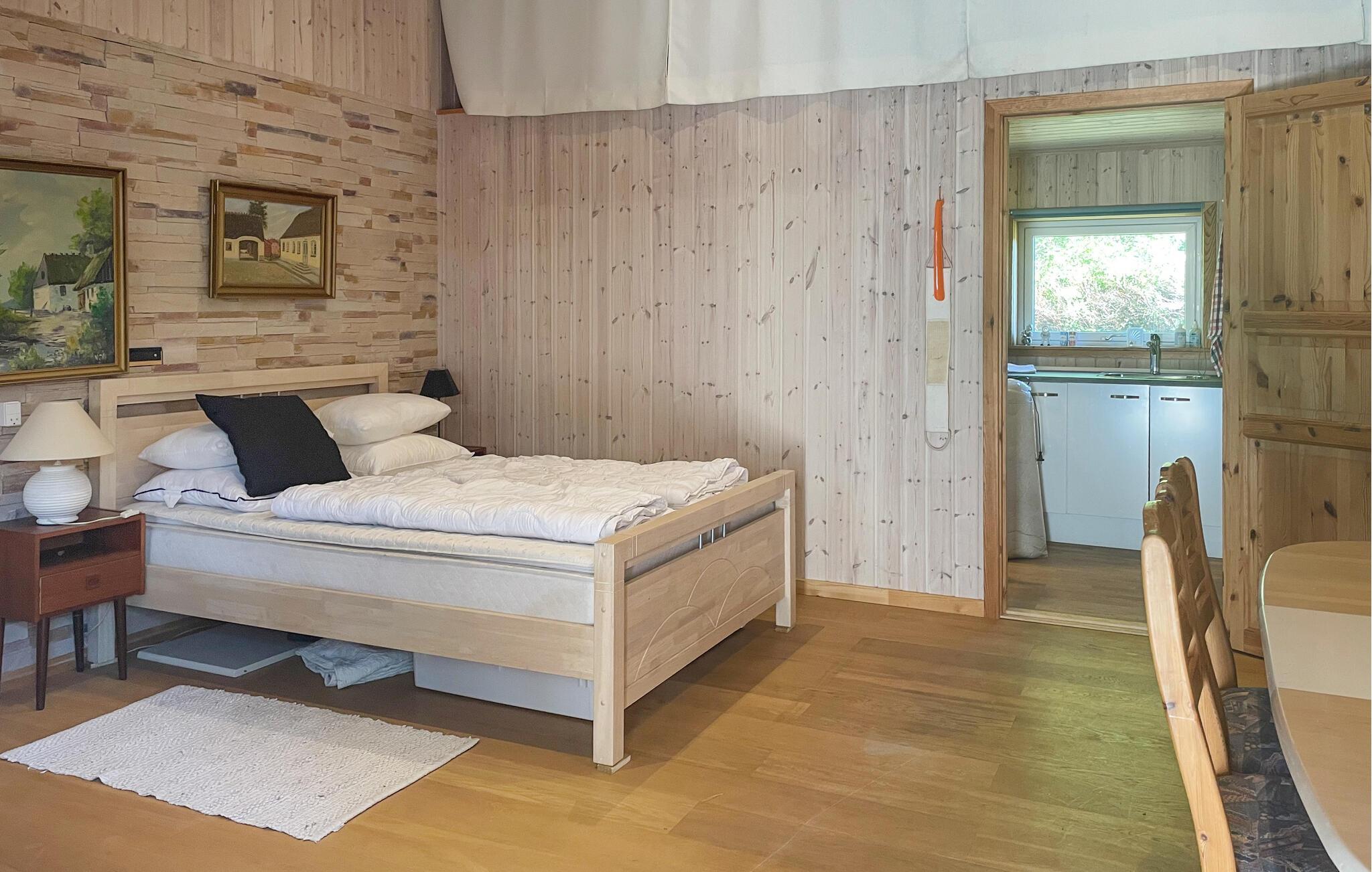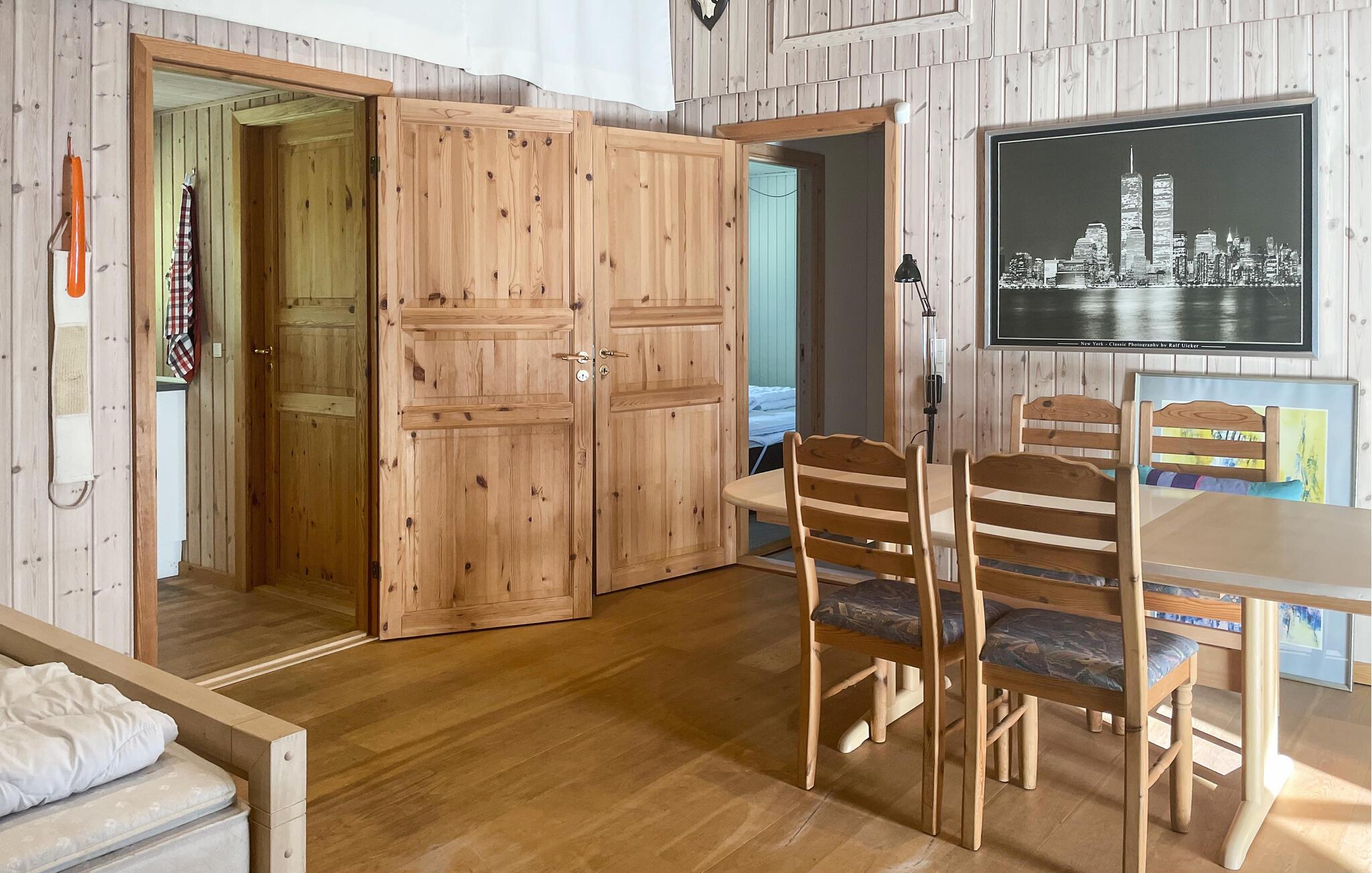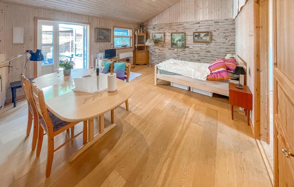 Treten Sie ein und lassen Sie sich von der wohnlichen Einrichtung empfangen. Der offene Wohn- und Schlafbereich ist hell und freundlich gestaltet, mit Holzwänden und geschmackvoller Dekoration. Verbringen Sie gesellige Stunden am Esstisch oder entspannen Sie bei einem guten Buch. Die Küche ist funktional ausgestattet und bietet die Möglichkeit, gemeinsam Ihre Urlaubsmahlzeiten zuzubereiten. Dank der großen Fenster fällt viel Tageslicht in die Räume und sorgt für eine angenehme Stimmung.