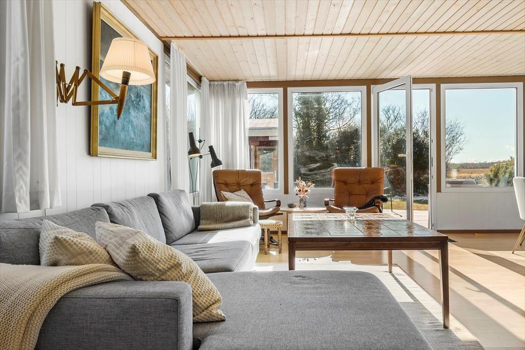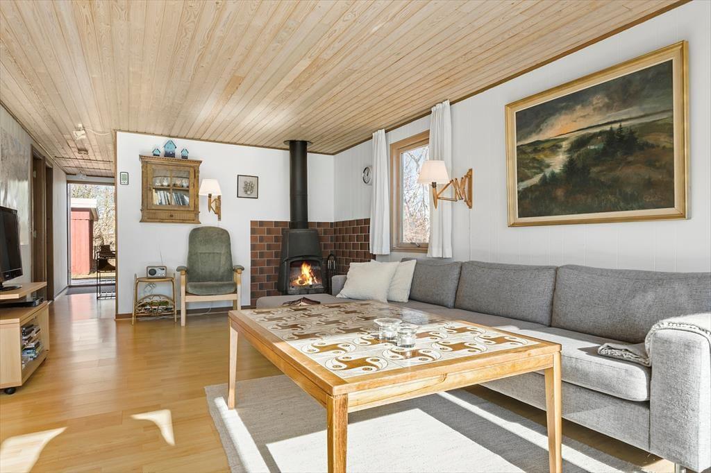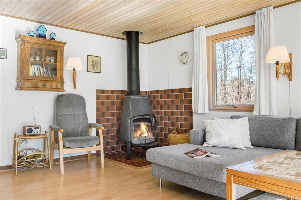 Nur 300 Meter von den ruhigen Wellen des Kattegat entfernt, am Ende eines Schotterweges, begrüßt dich dieses gemütliche Ferienhaus, in dem du mit viel Ruhe und Aussicht über die Landschaft verwöhnt wirst. Erhole und entspanne dich in vollen Zügen auf deiner Terrasse, auf der du ausgiebige Sonnenbäder und stimmungsvolle Grillabende im Kreise deiner Lieben verlebst. Wenn sich die Dunkelheit über das Gebiet legt, macht ihr es euch in geselliger Runde an der Lagerfeuerstelle gemütlich. Deine Kinder werden es lieben, derweil im Shelter zu spielen oder in diesem zu übernachten. Dein Ferienhaus begrüßt dich mit einem geräumigen Wohnraum, der einen Kaminofen, einen Fernseher und einen schönen Esstisch mit Platz für alle Mitreisenden umfasst. Die kleine aber gute Küche verzückt mit einem Ausgang ins Freie. Ein Duschbadezimmer steht für dich und deine Lieben bereit. Die Schlafplätze verteilen sich auf zwei Räume mit je einem Doppelbett. Vom Wohnraum aus trittst du hinaus auf eine Terrasse, an die ein Nebengebäude mit zwei weiteren Schlafplätzen in Form zweier Einzelbetten schließt.