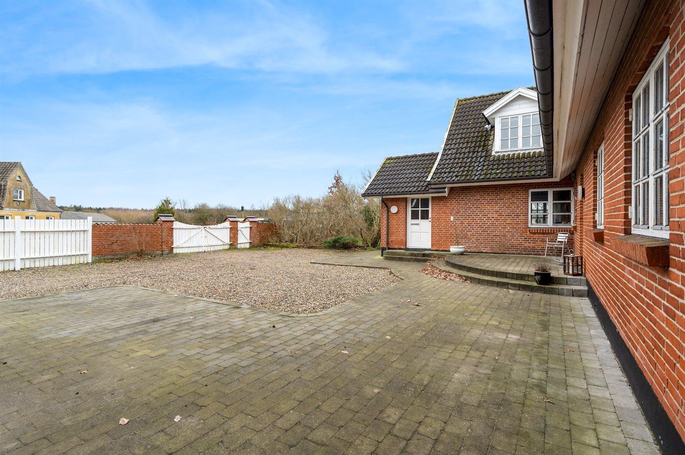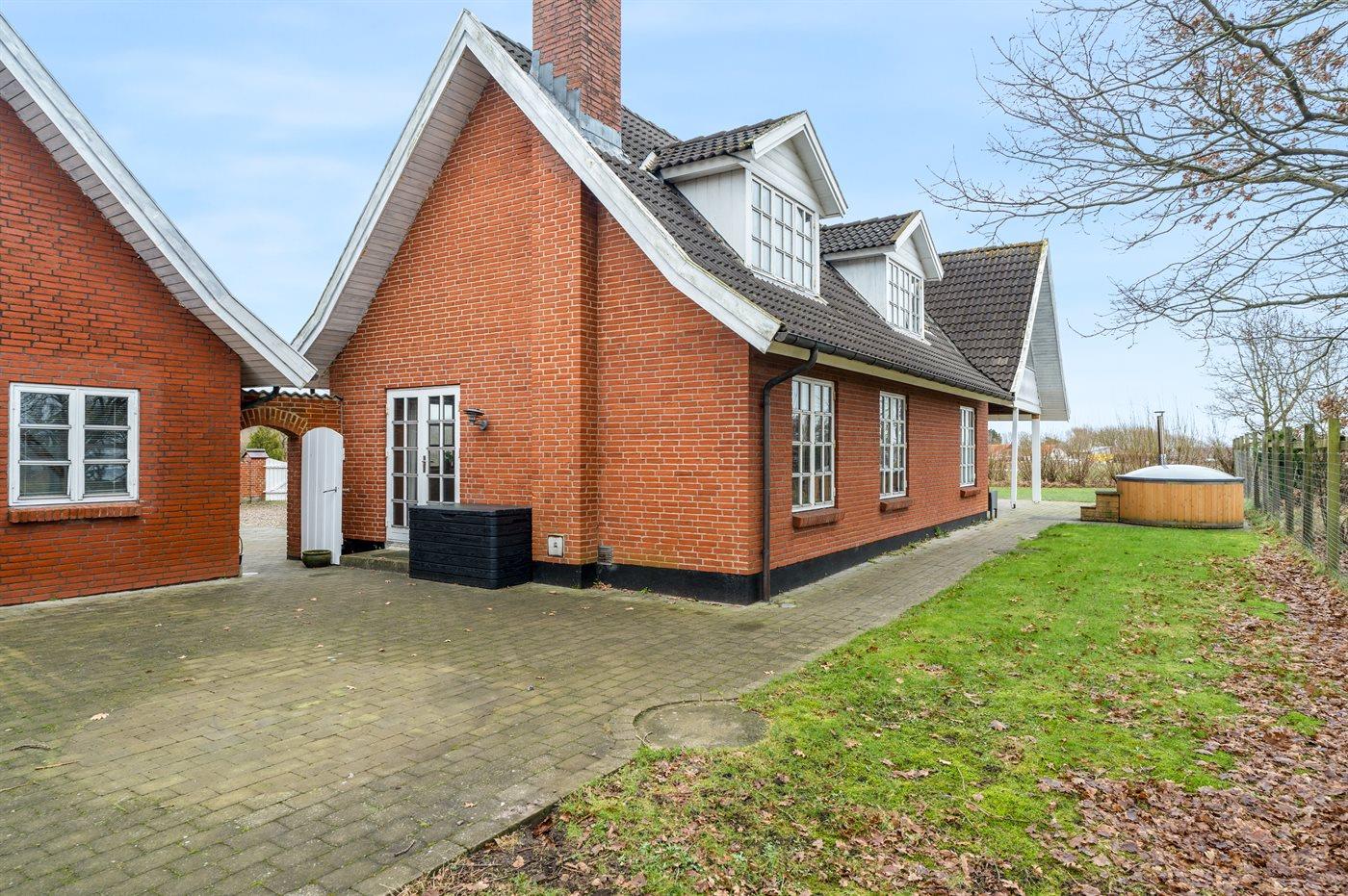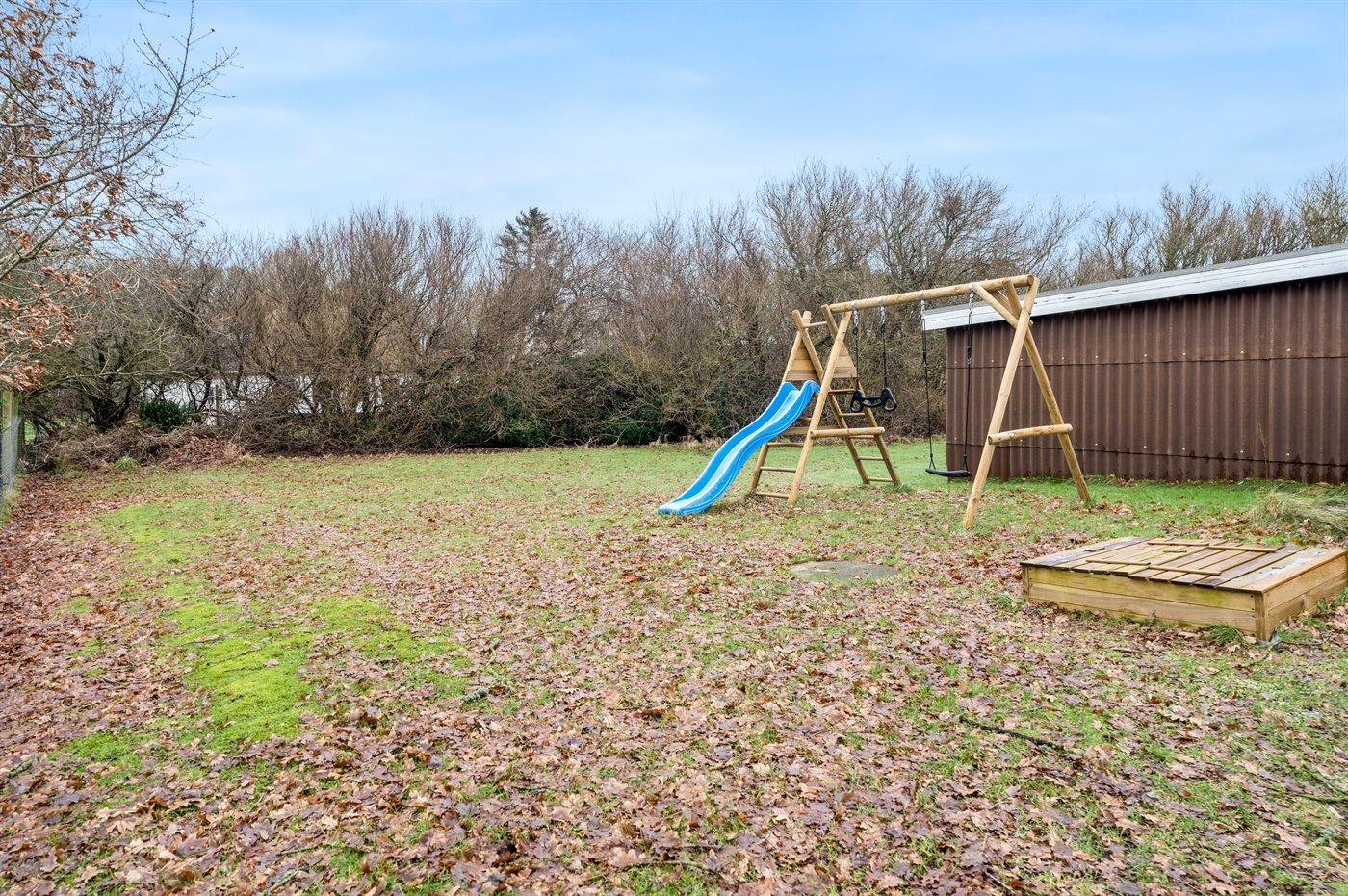 Die Ferienunterkunft liegt auf einem 1655 m² großen Gartengrundstück. Das Grundstück ist eingezäunt. Die Entfernung zum Meer beträgt 25000 m. Die Entfernung zum Fjord beträgt 200 m.Die Entfernung zum Wattenmeer beträgt 25000 m. Die Entfernung zu einem See beträgt 200 m. Die nächste Einkaufsmöglichkeit liegt 8000 m entfernt. In einem Abstand von 11900 m gibt es einen Golfplatz. Es steht ein offenes Terrassenareal zur Verfügung. Außerdem gibt es überdachte Terrasse.Balkon im Obergeschoss. Schaukel. Sandkasten. Rutsche.Lagerfeuerstelle. Es steht ein Grill zur Verfügung. Parkplatz auf dem Grundstück.