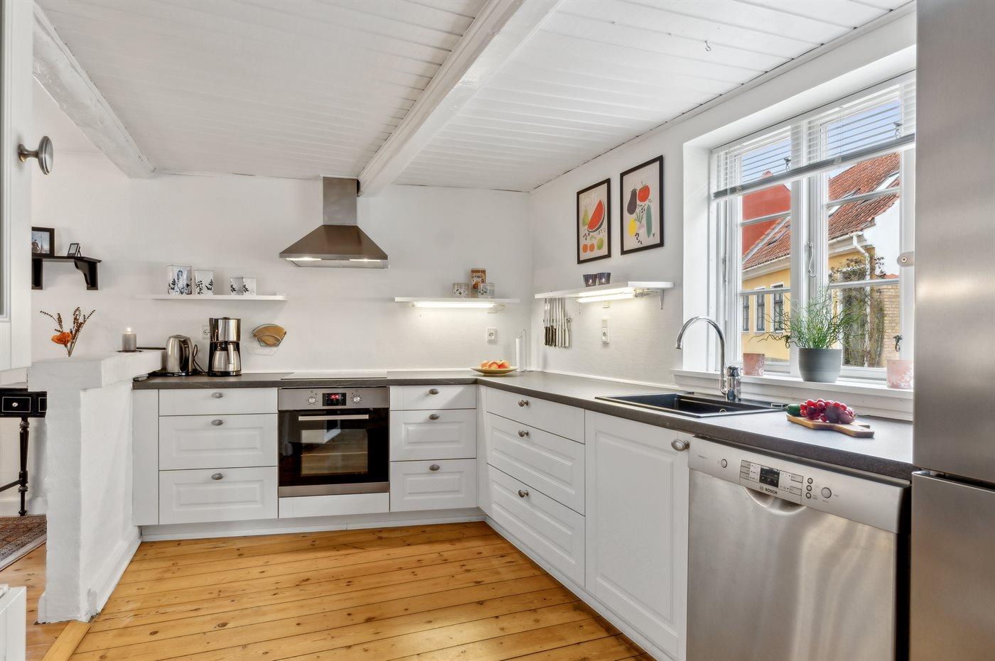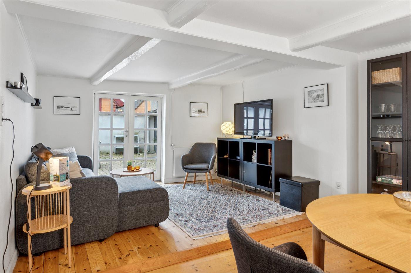 Dieses schöne Stadthaus liegt in einer der schönen Nebenstraßen in Faaborg - nur 75 m von der Geschäftsstraße und ca. 300 m vom lebhaften Hafen mit u. a. Kiosk und einem neuen Hafenbad entfernt. In Faaborg gibt es außerdem viele Sehenswürdigkeiten sowie eine gute Auswahl an Cafés und Speiselokale. Übrigens: Die 2 Schlafplätze auf der Schlafcouch befinden sich in einem Vorraum im Obergeschoss (siehe Grundriss).