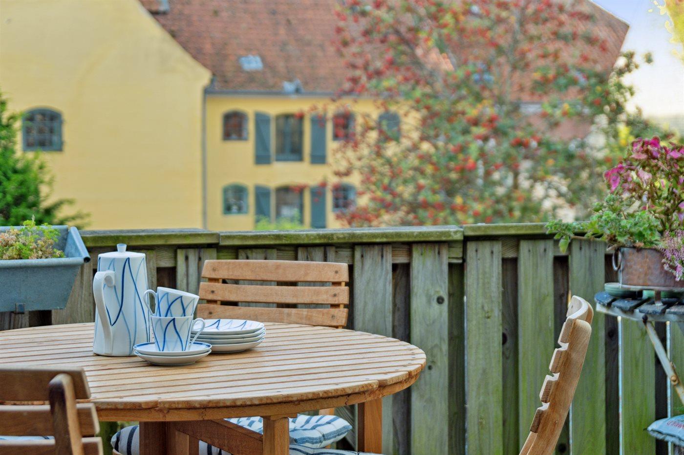 Gemütliche Ferienwohnung im Herzen von Faaborg mit großer Terrasse und Blick auf den Platz.