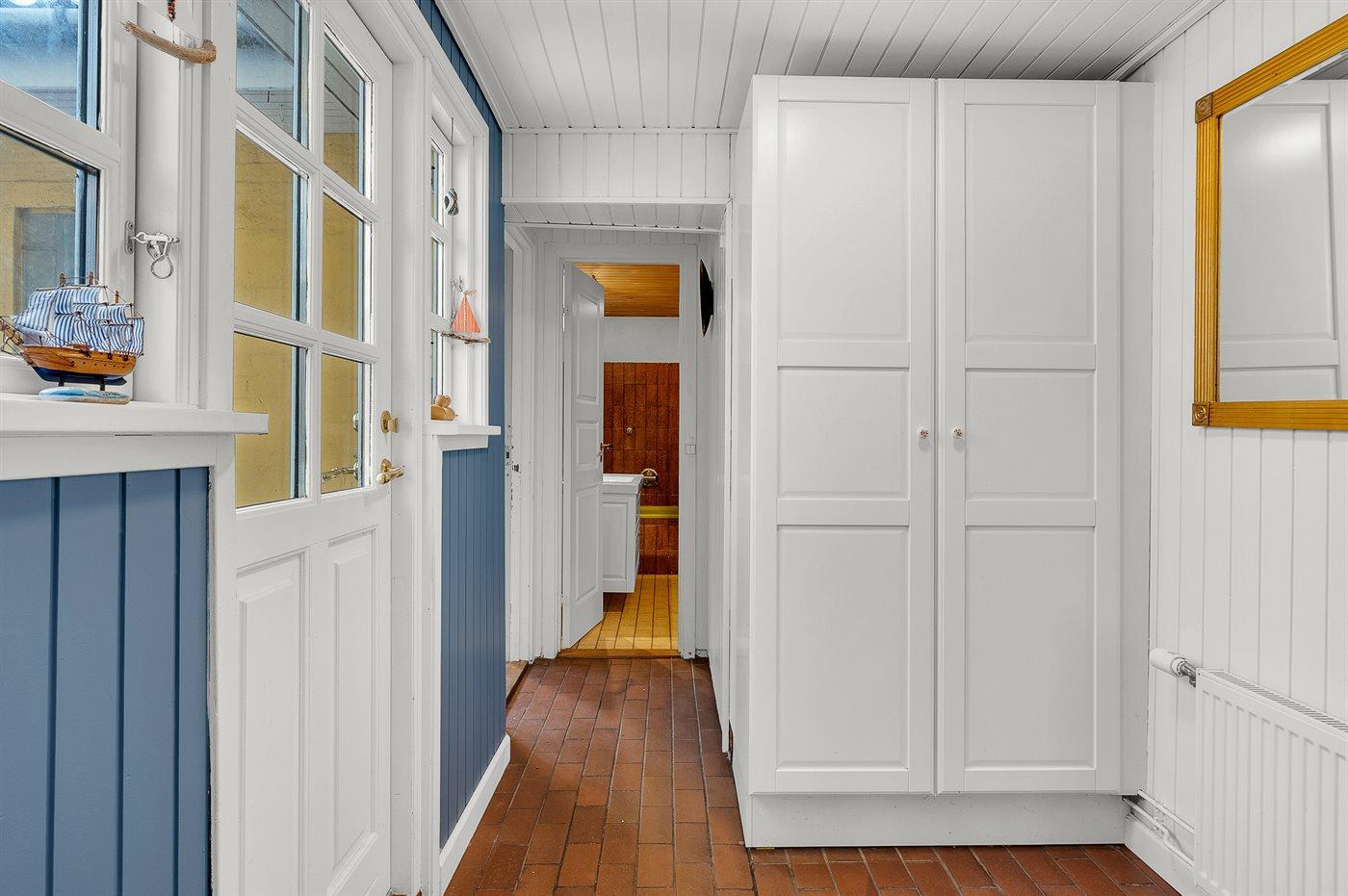 Das Haus ist schön eingerichtet und erstreckt sich über zwei Ebenen mit Wohnzimmern, Küche, Badezimmer usw. im Erdgeschoss sowie zwei Schlafzimmern und einem WC im Obergeschoss. Der nach Süden ausgerichtete Garten hinter dem Haus ist ungestört und verfügt über mehrere gemütlichen Terrassen, auf denen man sowohl unter der Überdachung als auch auf der Sonnenterrasse sitzen kann.