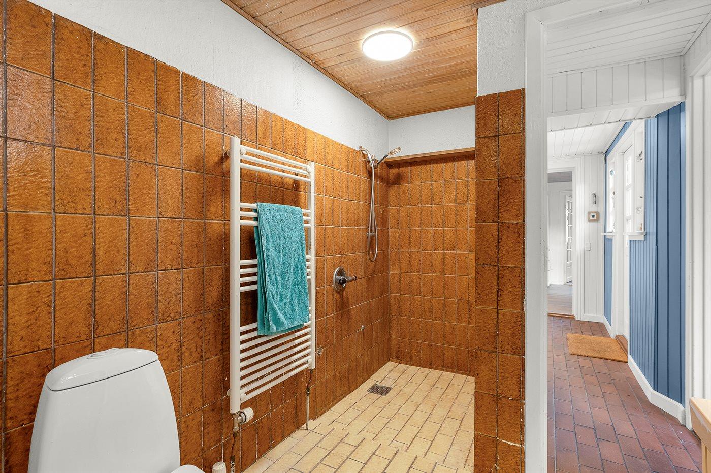 Es gibt 1 Badezimmer mit Duschnische und 2 Toiletten, davon 1 Gästetoilette. Fußbodenheizung in 1 Badezimmer.