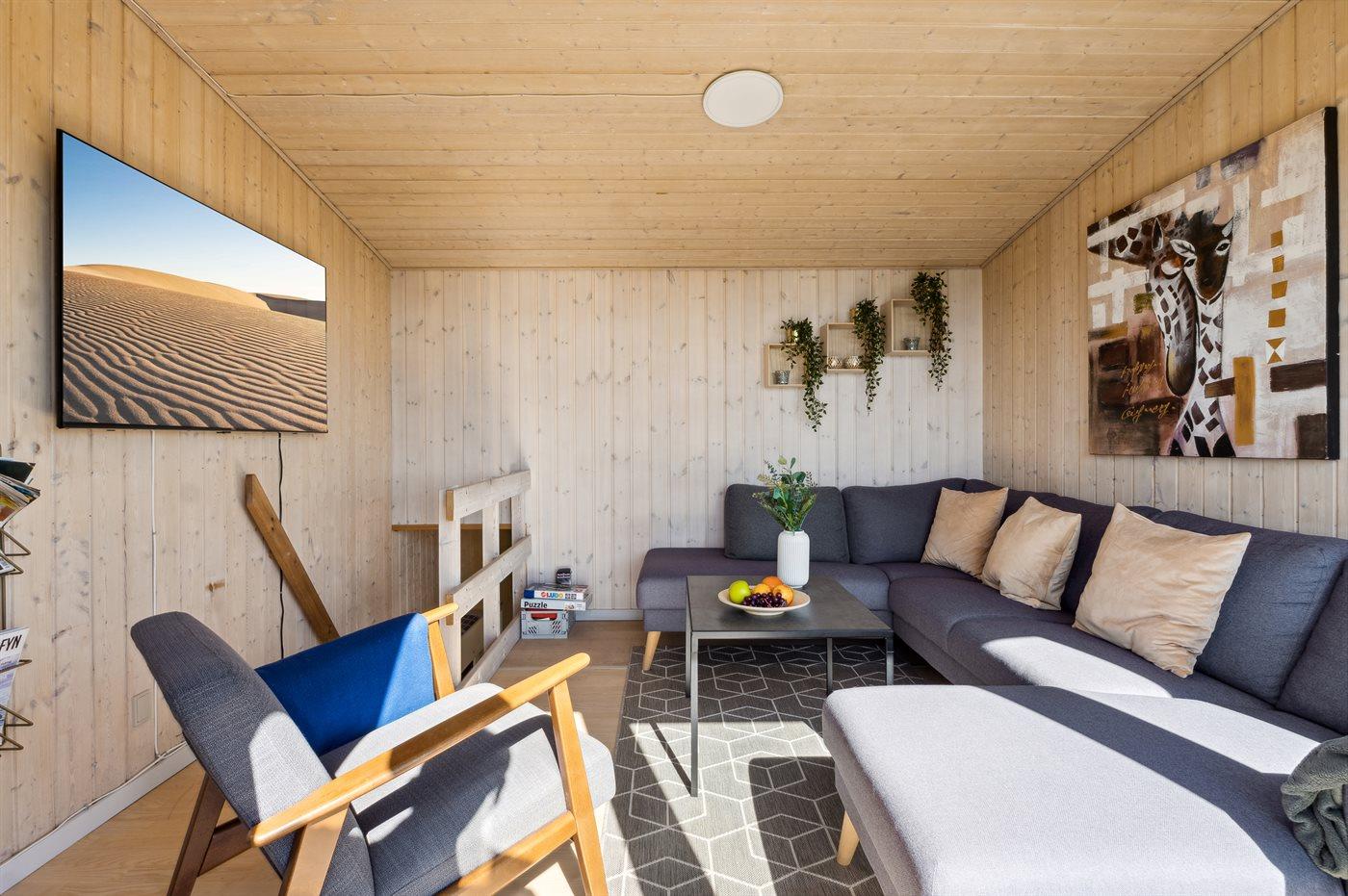 Dieses schöne, hell eingerichtete Ferienhaus befindet sich in dem beliebten Feriengebiet Mosegården. Das Haus liegt als eines der hinteren und damit höher gelegenen Häuser in der Gegend, weshalb die Aussicht über die Dänische Südsee (Sydfynske Øhav) sowohl vom Haus als auch von der Terrasse und besonders von dem Balkon im Obergeschoss aus fantastisch ist.