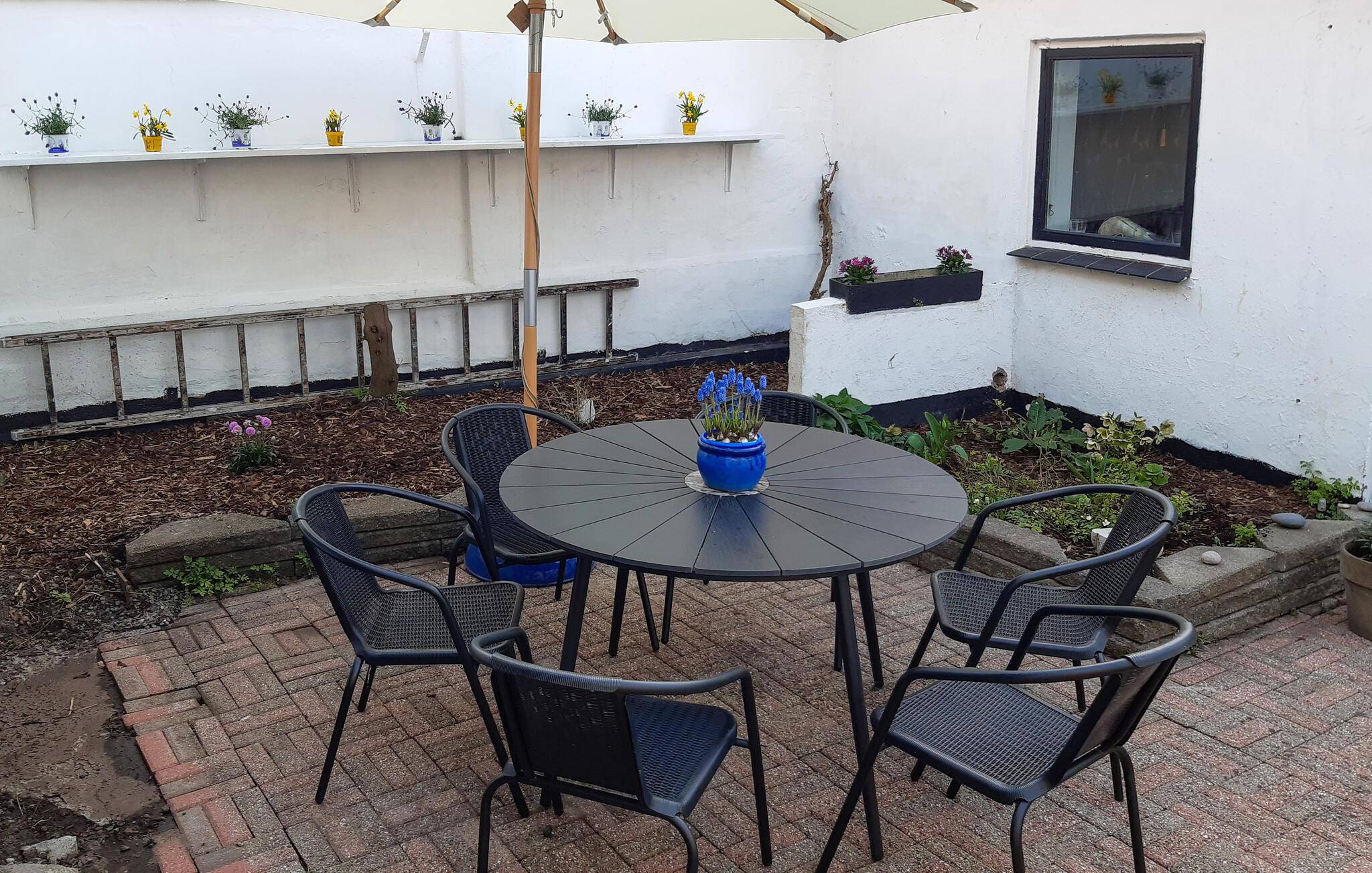Charmantes Stadthaus mit sonnigem Innenhof im Herzen von Faaborg, ideal für entspannte Urlaubstage.