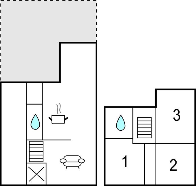 Badezimmer (nr. 2) - WC. Warmes und kaltes Wasser. Dusche