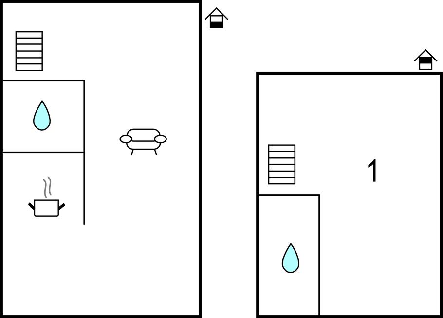 Badezimmer (nr. 1) - WC. Warmes und kaltes Wasser. Dusche