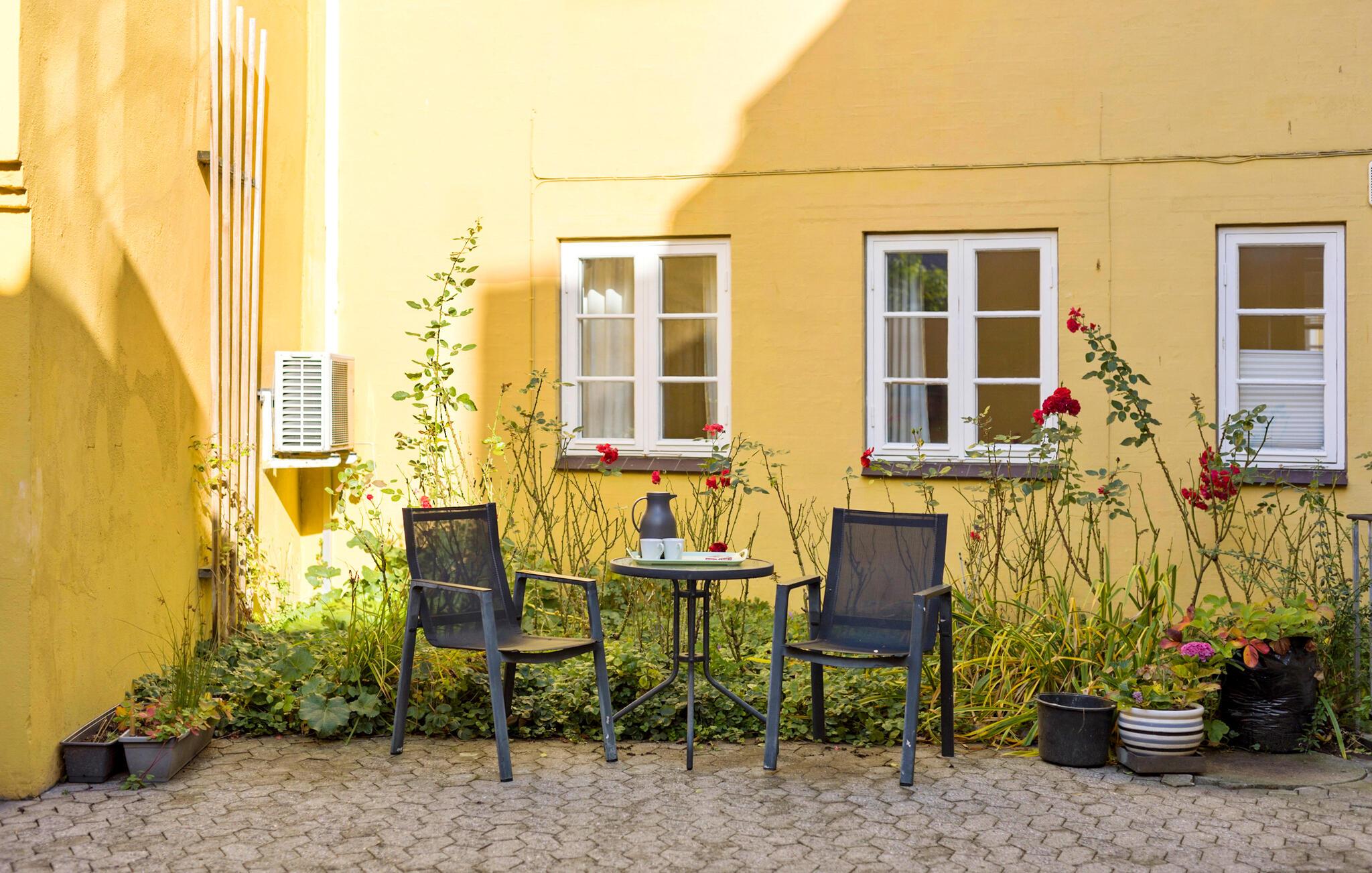 Nutzen Sie den Innenhof, um einen Kaffee im Freien zu genießen. Entspannen Sie und lassen Sie den Alltag hinter sich, während Sie die friedliche Umgebung auf sich wirken lassen. Von der Wohnung aus sind es nur wenige Schritte bis zu den malerischen Pflastersteingassen von Faaborg, die mit charmanten Häusern und gemütlichen Cafés locken.