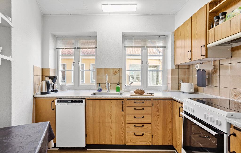 Genießen Sie die gemütliche Atmosphäre des liebevoll eingerichteten Wohnraums mit komfortablen Möbeln. Hier können Sie nach einem erlebnisreichen Tag im schönen Faaborg zur Ruhe zu kommen. Beginnen Sie Ihren Morgen mit einem Frühstück am Esstisch und planen Sie Ihre Entdeckungstouren durch die historische Stadt.