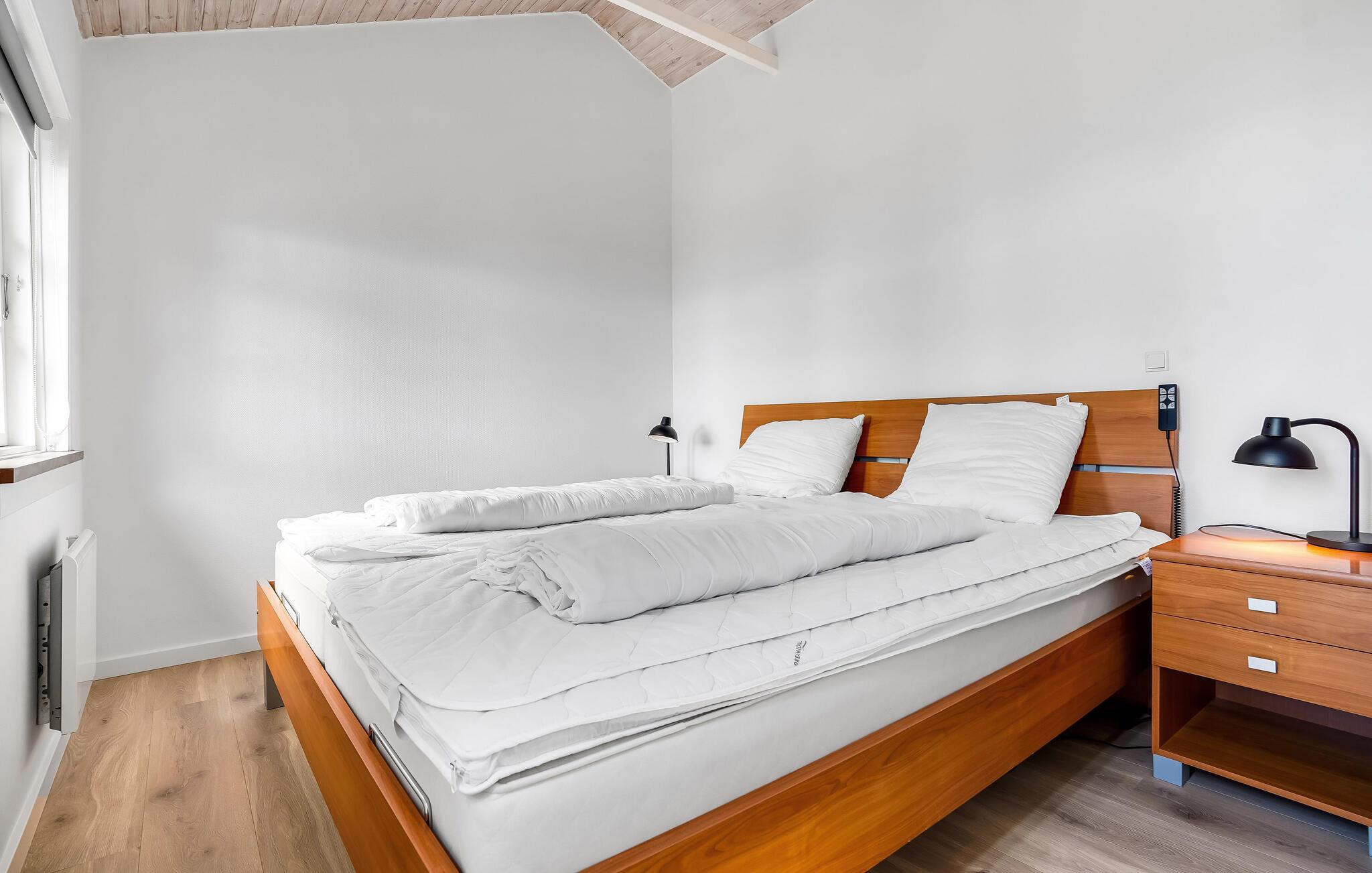 Freuen Sie sich auf einen unvergesslichen Aufenthalt in diesem wunderschön gelegenen Ferienhaus nahe Faaborg. Das Innere des Hauses besticht durch eine helle und moderne Einrichtung mit großen Fensterfronten, die einen traumhaften Blick auf das Wasser ermöglichen. Der offene Wohn- und Essbereich mit hohen Decken bietet eine gemütliche Sofaecke, einen Kaminofen für kühle Abende und einen großzügigen Esstisch mit direktem Zugang zur Terrasse. In der Küche können Sie kulinarische Köstlichkeiten zubereiten und diese mit Blick auf das Wasser genießen. Das luxuriöse Badezimmer mit Whirlpool und Sauna lädt nach einem ereignisreichen Tag zum Entspannen ein.
