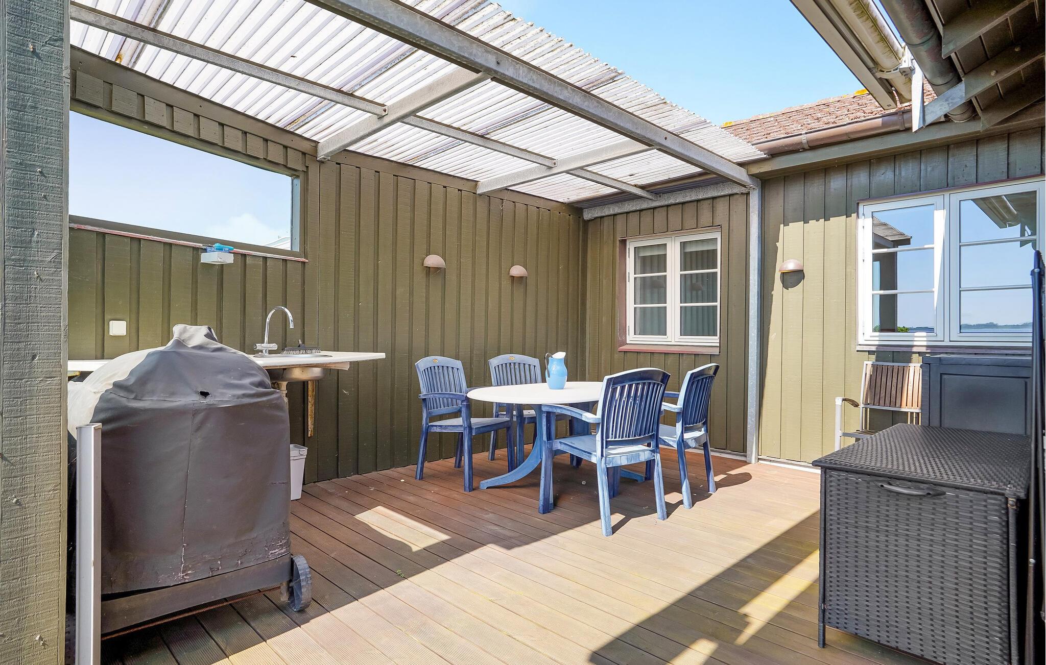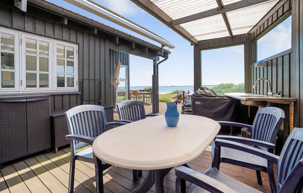 Nutzen Sie die großzügige Holzterrasse mit Sitzgruppen und Liegestühlen, um die frische Meeresluft zu genießen. Der private Badesteg ermöglicht Ihnen ein erfrischendes Bad im klaren Wasser, während Sie die malerische Aussicht auf die Inseln Bjørnø, Avernakø und Lyø genießen. Eine überdachte Terrasse bietet Schutz an windigeren Tagen und lädt zu gemütlichen Grillabenden ein.