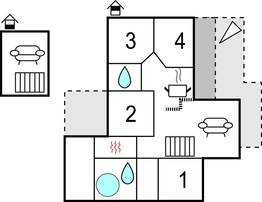Badezimmer (nr. 1) - WC. Warmes und kaltes Wasser. Dusche