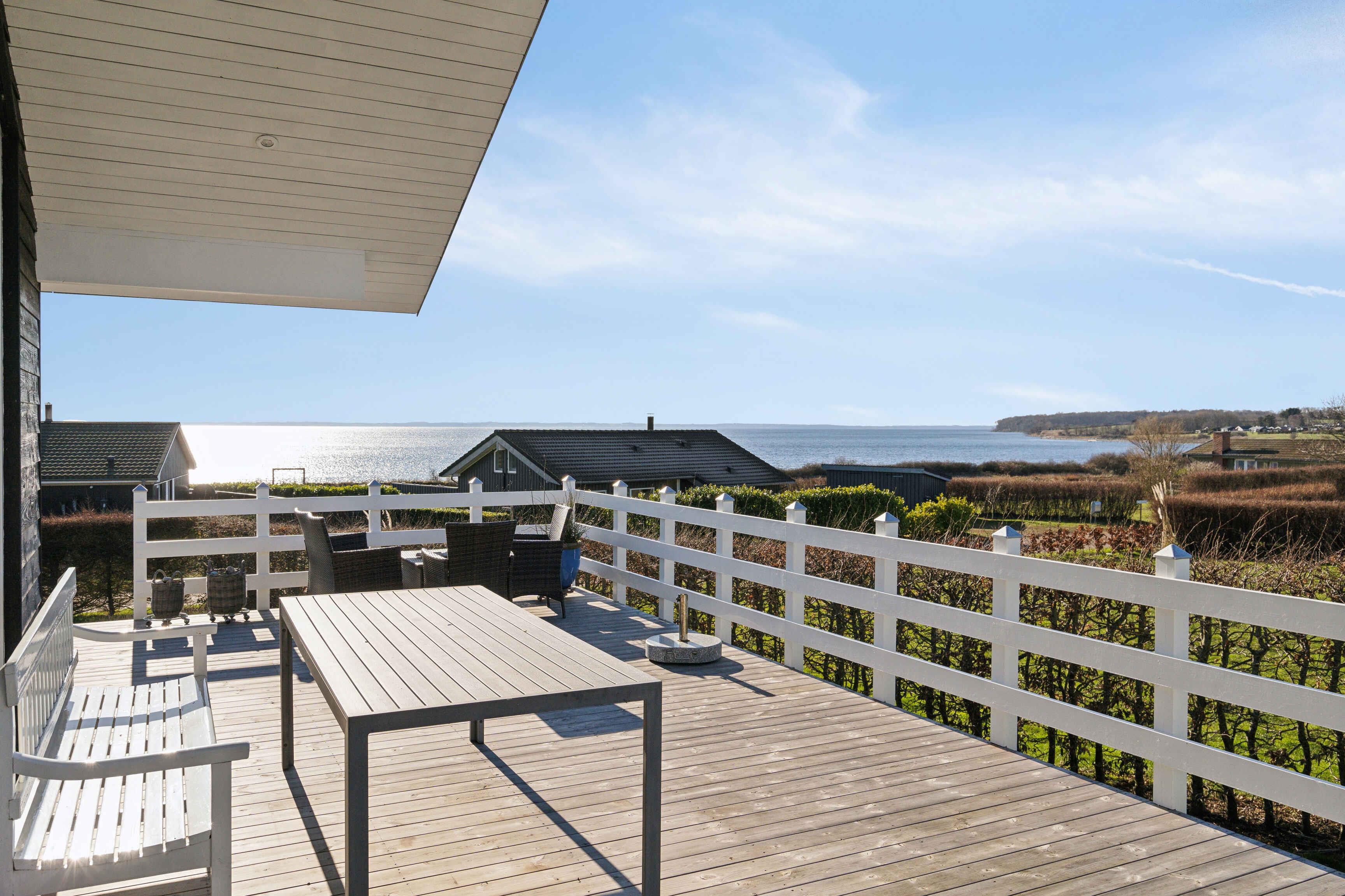 Modernes Ferienhaus mit Meerblick, direktem Strandzugang und ruhiger Lage in Faaborg, ideal für Natur- und Wasserliebhaber.