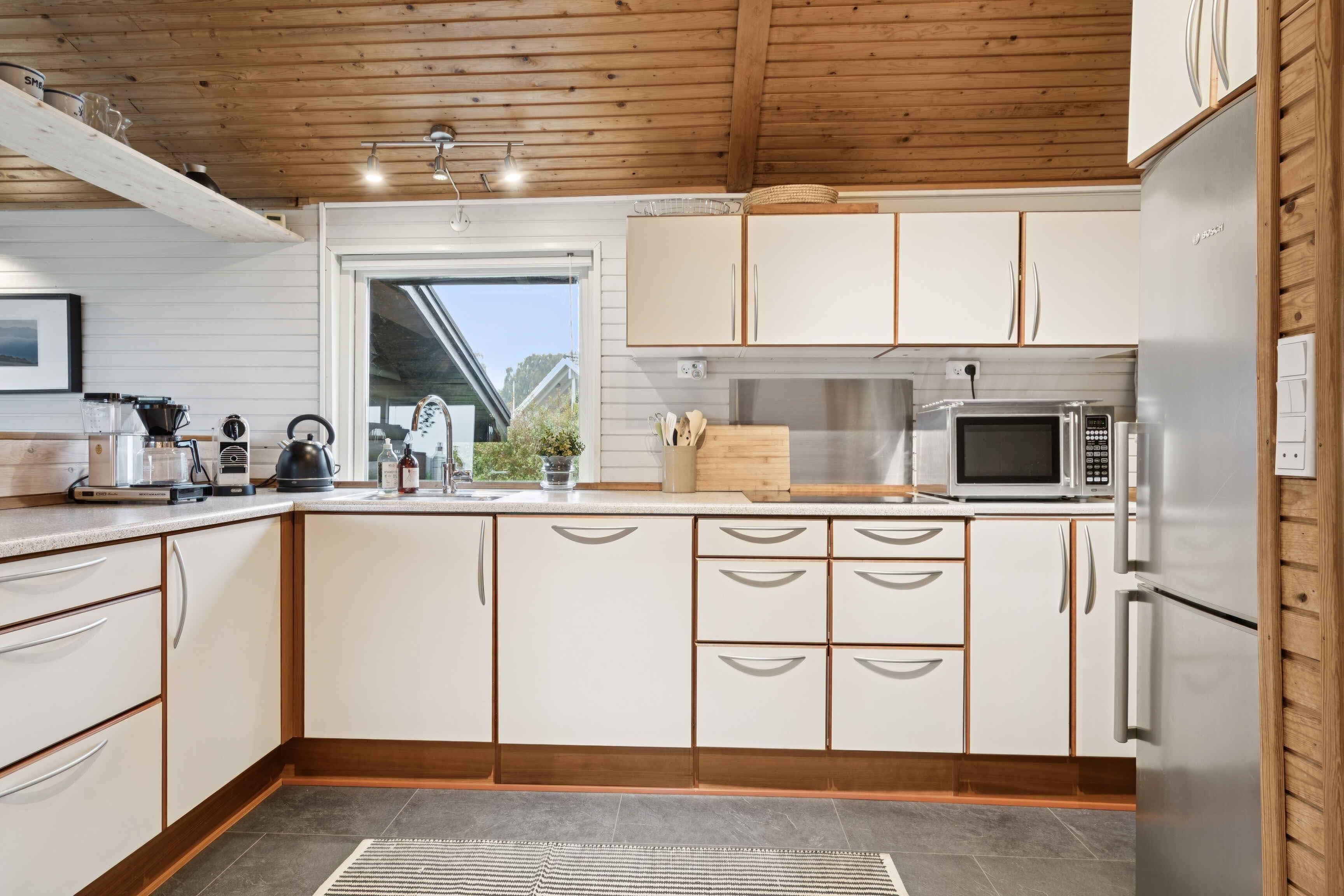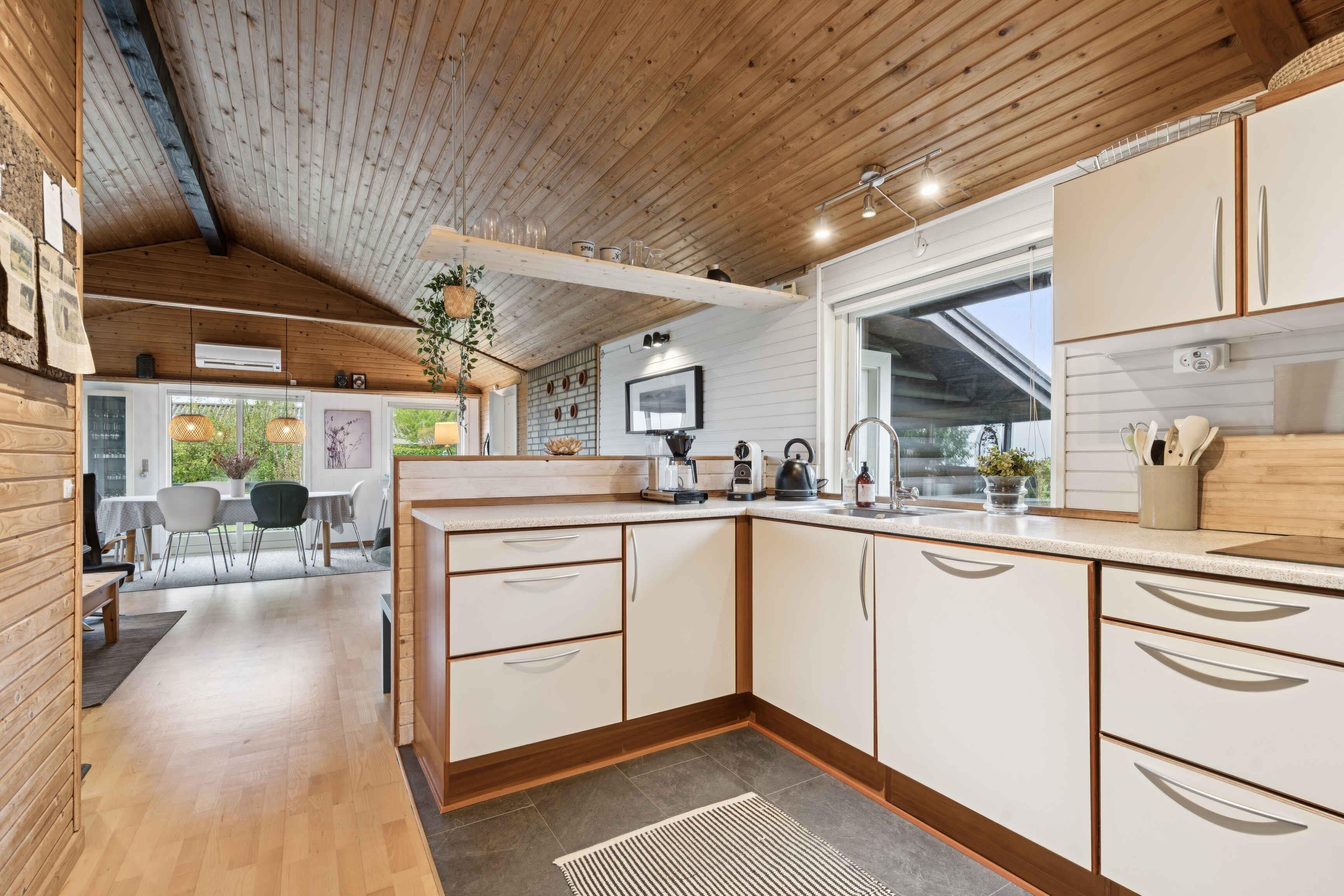 Gemütliches Ferienhaus in Horne auf Südfünen mit Meerblick Dieses charmante schwarze Blockhaus mit 8 Schlafplätzen liegt in Horne auf Südfünen und bietet eine große, nach Süden ausgerichtete Terrasse mit Panoramablick auf das Meer. Hier können Sie Ruhe, Privatsphäre und den freien Blick über den südfünischen Inselbogen genießen. Die Terrasse lädt sowohl zum Entspannen als auch zum geselligen Beisammensein ein – mit Esstisch, Liegestühlen und viel Platz für Grillabende. Sie bildet den natürlichen Rahmen für das Leben im Freien, während der Meerblick stets im Mittelpunkt steht. Das Ferienhaus verbindet authentische Sommerhaus-Atmosphäre mit modernem Komfort und eignet sich ideal für Familien, die einen Urlaub voller Ruhe, Nähe und schöner Natur im Herzen Südfünens verbringen möchten. Zugleich gibt es viele Möglichkeiten für Wanderungen, Radtouren und Wassersport. Das Haus ist gut eingerichtet, mit offener Küche und Wohnbereich, sodass das Miteinander im Vordergrund steht. Die großen Südfenster holen den Ausblick und das Meer direkt ins Wohnzimmer. Viele originale Details aus dem Baujahr 1968 sind erhalten geblieben, was dem Haus eine ganz besondere Gemütlichkeit und Ruhe verleiht. Wer etwas Stadtleben und Kultur erleben möchte, ist in nur 10 km in Faaborg – eine der ältesten Handelsstädte Dänemarks. Hier gibt es zahlreiche Einkaufsmöglichkeiten, Cafés, Restaurants, ein reiches Kulturangebot und eine idyllische Hafenpromenade. Von hier aus kann man auch die Fähre nach Lyø und Avernakø nehmen und das besondere Inselflair erleben. Achtung: Wird nicht für gewerbliche Nutzung vermietet.