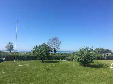 Gemütliches Ferienhaus in Faaborg mit Meerblick, Sauna, Holzofen und großem Garten, nur wenige Minuten vom Strand entfernt.