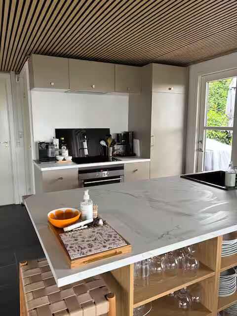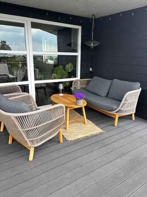 Gemütliches Ferienhaus mit fantastischem Meerblick, drei Schlafzimmern und sechs Schlafplätzen. Die helle, offene Wohnküche bietet einen schlichten und einladenden Rahmen für den Urlaub. Das Haus liegt in einer ruhigen Ferienhaussiedlung in kurzer Gehentfernung zur Küste, was das Leben im Freien besonders angenehm macht. Im Inneren findest du eine Infrarotsauna für zusätzliche Entspannung sowie einen Holzofen, der in der kühlen Jahreszeit für gemütliche Wärme sorgt. Die Einrichtung ist einfach und funktional, sodass der Fokus auf Erholung statt auf alltäglichen Aufgaben liegt. Ein angrenzendes Annex bietet vier weitere Schlafplätze und macht das Haus flexibel für Familien oder Freunde. Der große Garten verfügt über mehrere Terrassen und viel Platz zum Spielen, Entspannen und Essen. Der Strand und ein saisonaler Badesteg sind nur wenige Minuten entfernt — das Meer wird so zum natürlichen Teil des Urlaubs. Die Umgebung bietet Ruhe, schöne Natur und gute Möglichkeiten zum Wandern und Radfahren. Küstenwege, kleine Waldabschnitte und Aussichtspunkte ermöglichen es, die südfünische Inselwelt aus nächster Nähe zu erleben. Hier findet man sowohl Stille als auch offene Landschaften, die zu Pausen und Ausflügen einladen. Faaborg liegt in der Nähe und bietet schöne Strände, gute Einkaufsmöglichkeiten, gemütliche Restaurants und ein charmantes Hafenmilieu. Die Stadt verfügt über kulturelle Angebote, Museen und kleine Geschäfte, und die Fähren ermöglichen einfache Tagesausflüge zu den Inseln. Svendborg ist etwa eine halbe Stunde entfernt und bietet weitere Aktivitäten, maritime Umgebungen und Erlebnisse. Die Kombination aus Meer, Natur, Ruhe und stadtnaher Lage macht die Region ideal für Gäste, die sowohl Entspannung als auch Abwechslung suchen. Das Haus ist eine einladende Basis für gemeinsame Urlaubstage. Achtung: Wird nicht für gewerbliche Nutzung vermietet.