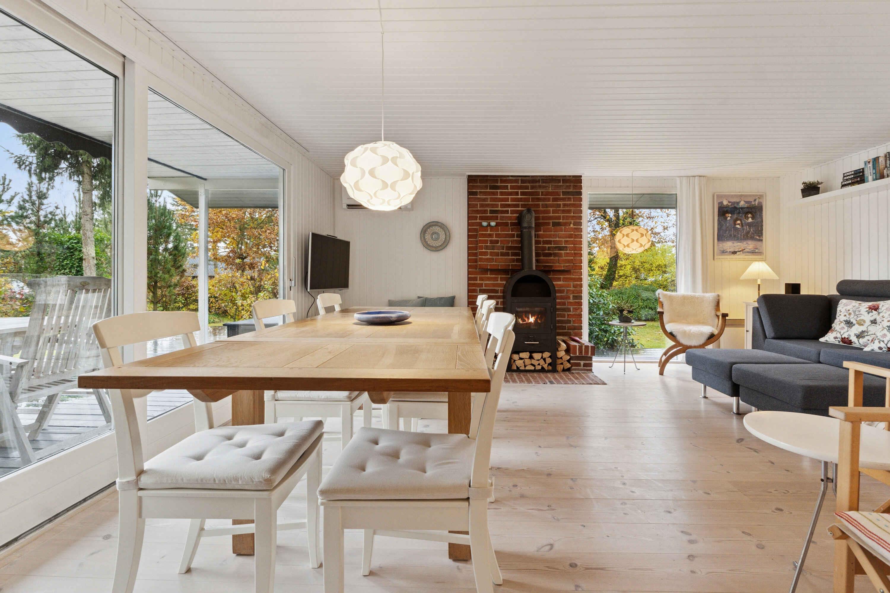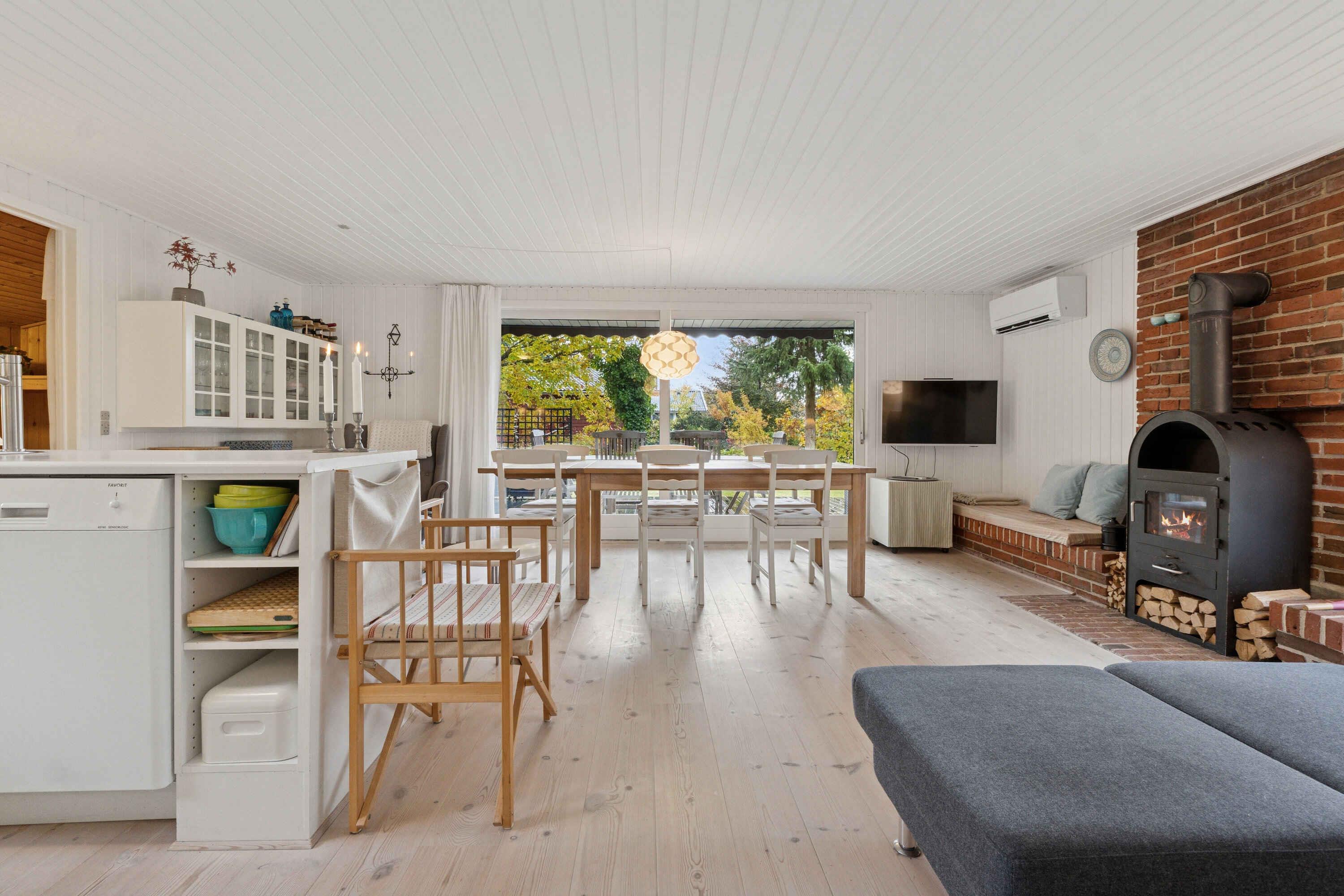 Dieses gut geschnittene Ferienhaus mit 74 m² ist auf Entspannung und gemeinsames Beisammensein ausgelegt. Es bietet Platz für bis zu sechs Personen in vier Schlafzimmern, sodass Familie und Freunde komfortabel zusammenkommen können. Im Inneren erwarten Sie helle Räume mit großen Fenstern, die die Natur direkt in den Wohnbereich holen. Küche und Wohnzimmer sind offen gestaltet und ermöglichen ein gemeinsames Miteinander – ob beim Kochen, Spielen oder Entspannen auf dem Sofa. Der Grundriss ist schlicht und funktional. Das Haus ist ganzjährig nutzbar und wird effizient mit einer Wärmepumpe beheizt. Eingangsbereich und Badezimmer sind praktisch eingerichtet, und jeder Quadratmeter ist durchdacht genutzt. Ein zusätzliches Nebengebäude und ein Carport bieten flexible Nutzungsmöglichkeiten und zusätzlichen Stauraum. Draußen befindet sich ein großes, gepflegtes Grundstück, umgeben von hohen Bäumen. Die Terrasse verläuft rund um das Haus und bietet zu jeder Tageszeit Sonne oder Schatten. Hier genießen Sie Ruhe, Privatsphäre und ideale Bedingungen für Mahlzeiten und Entspannung im Freien. Die Umgebung zeichnet sich durch ihre schöne Natur und eine ganz besondere Atmosphäre aus. Die Gudenå schlängelt sich durch die Landschaft und ist nur einen kurzen Spaziergang entfernt. Kanufahren, Angeln oder ein erfrischendes Bad sowie zahlreiche Wander- und Radwege machen den Aufenthalt abwechslungsreich. Gleichzeitig ist alles in der Nähe, was den Urlaub bequem macht. Einkaufsmöglichkeiten befinden sich im nahen Umfeld, und Golfplätze, Gasthöfe und ein Freizeitbad sind schnell erreichbar. Die zentrale Lage in Mitteljütland eignet sich hervorragend für Ausflüge zu größeren Städten und Sehenswürdigkeiten. Achtung: Wird nicht für gewerbliche Nutzung vermietet.