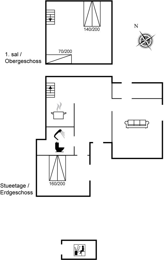 Es gibt 1 Badezimmer mit Duschnische und 1 Toilette.. Fußbodenheizung in 1 Badezimmer. Es steht eine Sauna zur Verfügung in der Sie sich so richtig entspannen können.