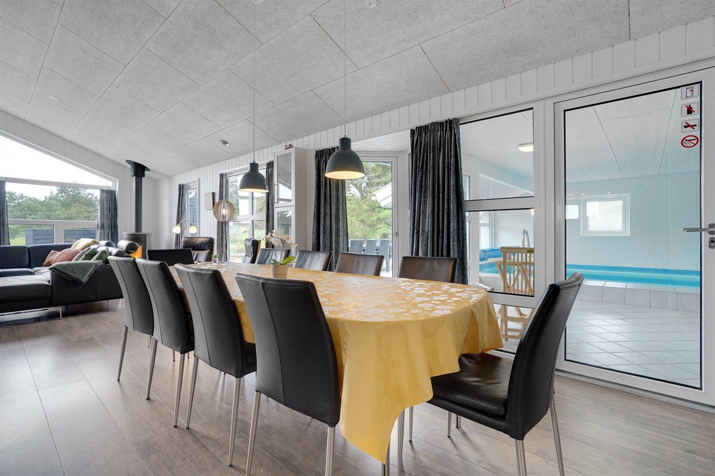 Das Haus eignet sich für 10 Personen und ist mit 5 schönen und gemütlichen Schlafzimmern sowie ein kleines, gemütliches offenes Obergeschoss eingerichtet. Eine gut ausgestattete Küche, in der Sie die Morgensonne genießen können, lädt dazu ein sich kulinarisch zu entfalten. Sowohl von der Küche als auch von der Essecke haben Sie Einblick in die schöne Swimmingpool-Abteilung mit großem Whirlpool (Standwasser) und Sauna. Im gemütlichen Wohnzimmer mit Wärmepumpe können Sie sich an kalten Tagen am Kaminofen, der gemütlich knistert, aufwärmen während Sie sich einen guten Film ansehen oder es sich mit einem Buch gemütlich machen.