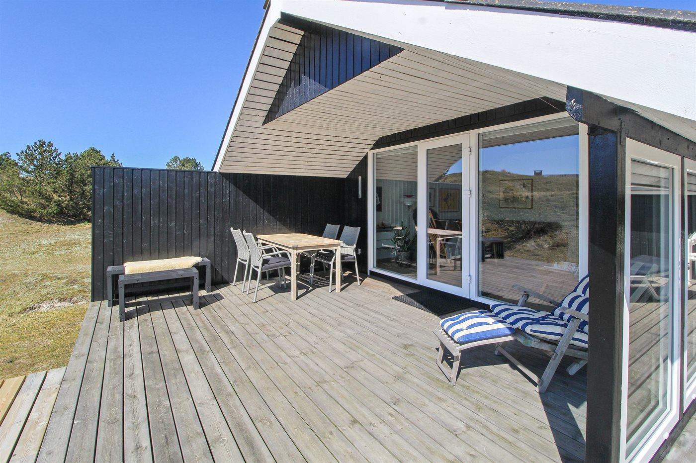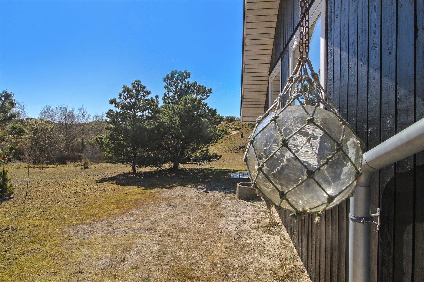 Die Ferienunterkunft liegt auf einem 2523 m² großen Dünengrundstück. Die Entfernung zum Meer beträgt 2000 m.Die Entfernung zum Wattenmeer beträgt 900 m. Die nächste Einkaufsmöglichkeit liegt 400 m entfernt. In einem Abstand von 1500 m gibt es einen Golfplatz. Es steht ein 60 m² Terrassenareal zur Verfügung. Außerdem gibt es 10 m² überdachte Terrasse. Davon insgesamt 15 m² geschlossene Terrasse. Geräteraum. Parkplatz auf dem Grundstück.